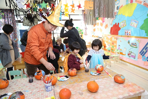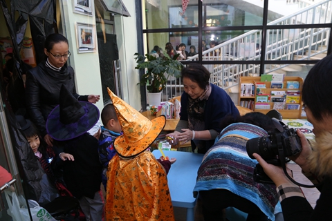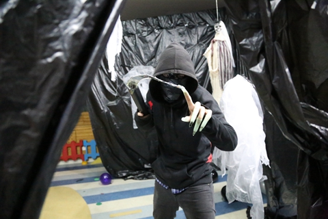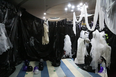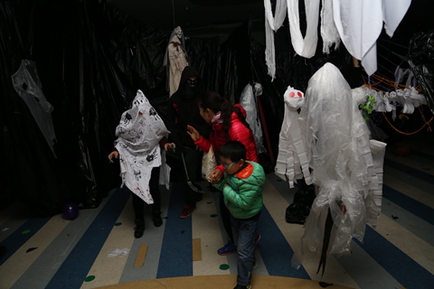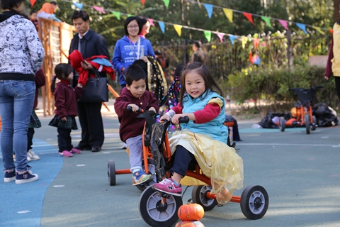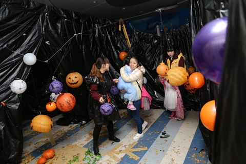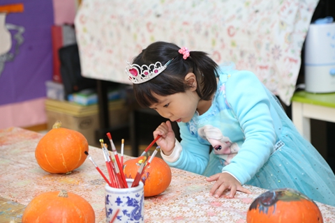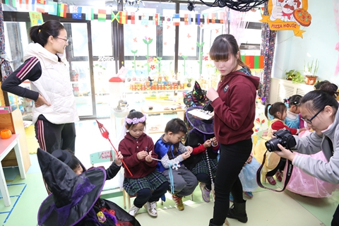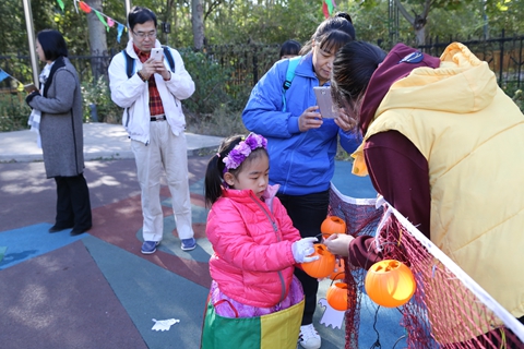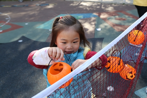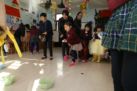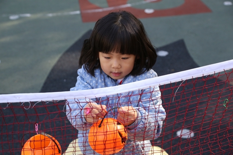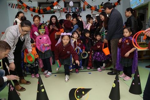 动会分为上下两场,上半场是孩子们带来的精彩的器械操和英文律动操展示,孩子们在音乐的节奏下开心的跳着蹦着,获得了家长的阵阵掌声。下半场主要是我们万圣节游戏的环节,本次万圣节游戏我们分别设置了室外的游戏小袋鼠摘南瓜、骑小车过障碍和大小鬼的游戏,还有室内游戏吹面粉、做帽子、做具、装饰南瓜、巫师帽套圈、掷眼球、蜘蛛爬、制作蜘蛛帽、南瓜保龄球,同时还有我们最精彩的鬼屋,孩子们在家长的带领下玩的不亦乐乎,活动结束后家长和孩子们一起品尝了我们的万圣节大餐,获得孩子和家长的一致好评。