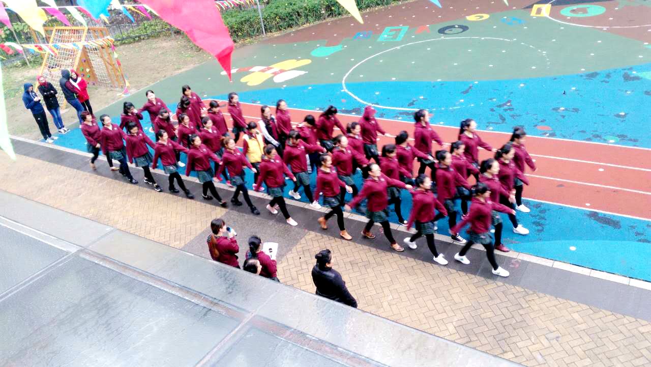 教师们迈着整齐的步伐入场