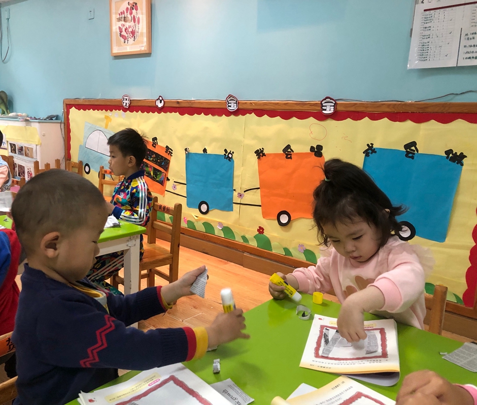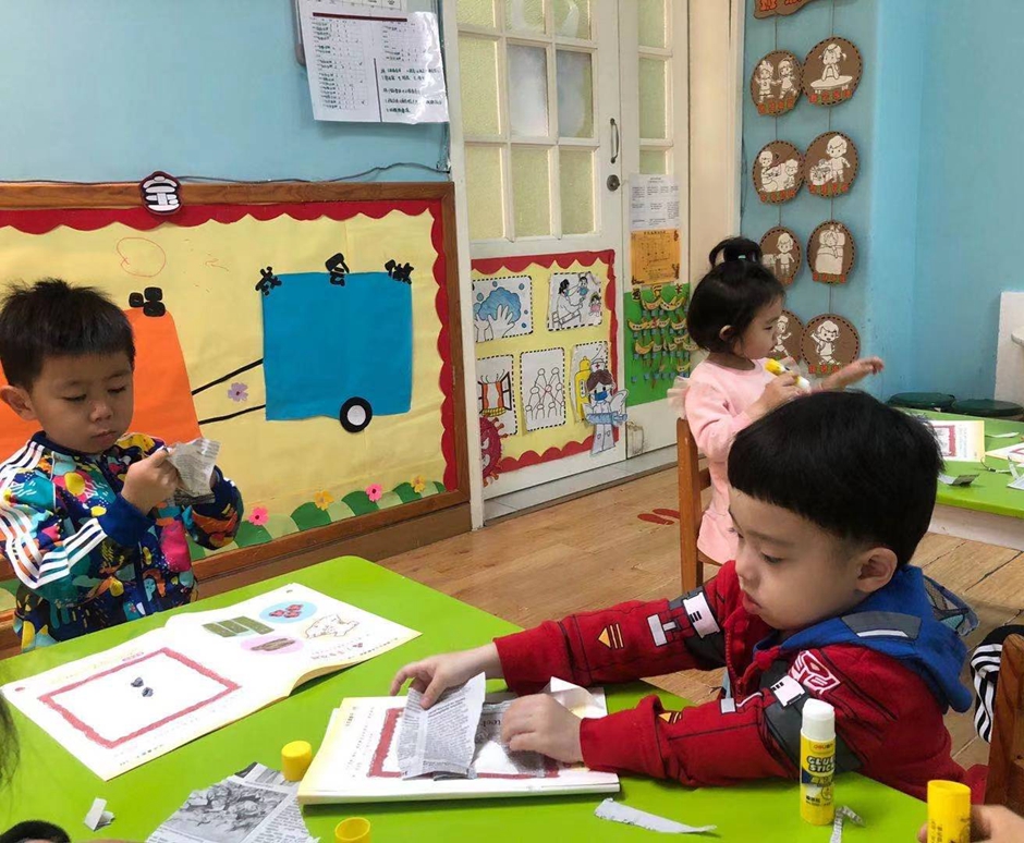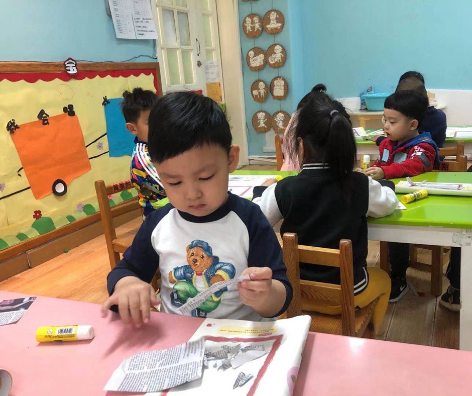 今天我们学习了撕纸贴画,用纸撕出了漂亮的衣服、各种各样的图形以及我们喜欢的小动物等等,