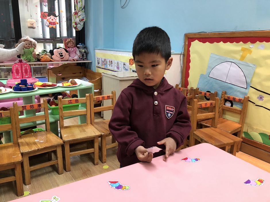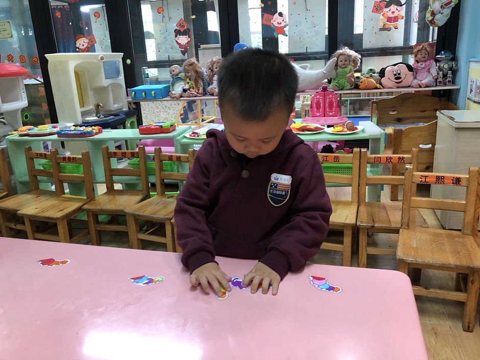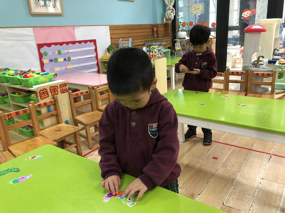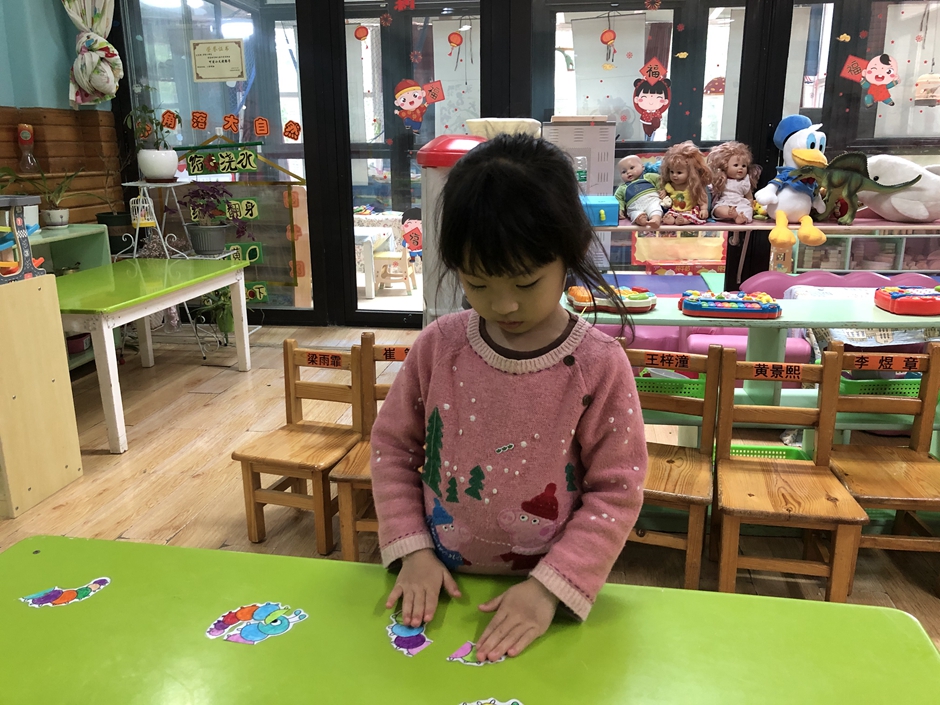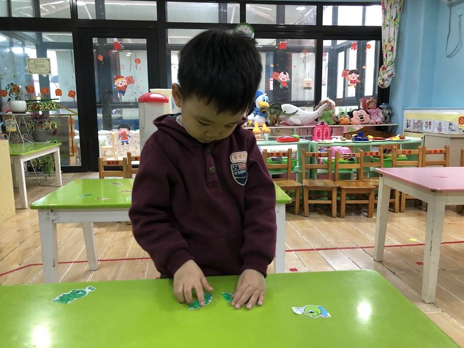 今天我们玩了特别的游戏,帮助毛毛虫找自己的身体,找相同颜色的毛毛虫身体并拼接起来,我们玩的超级开心。