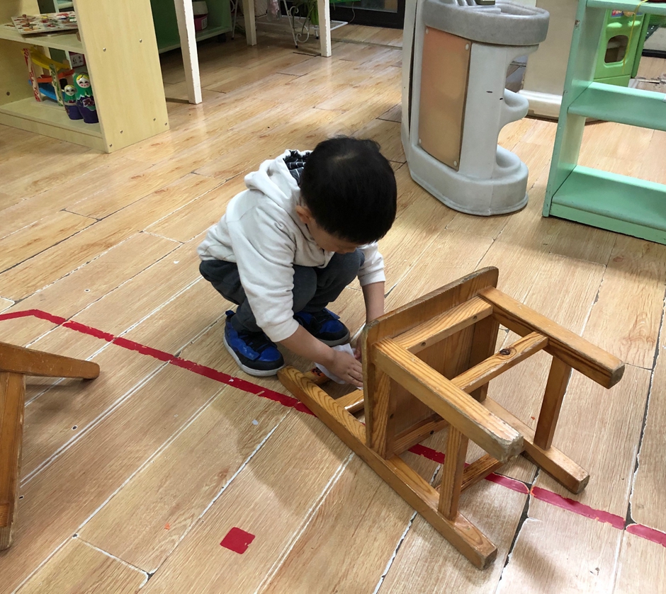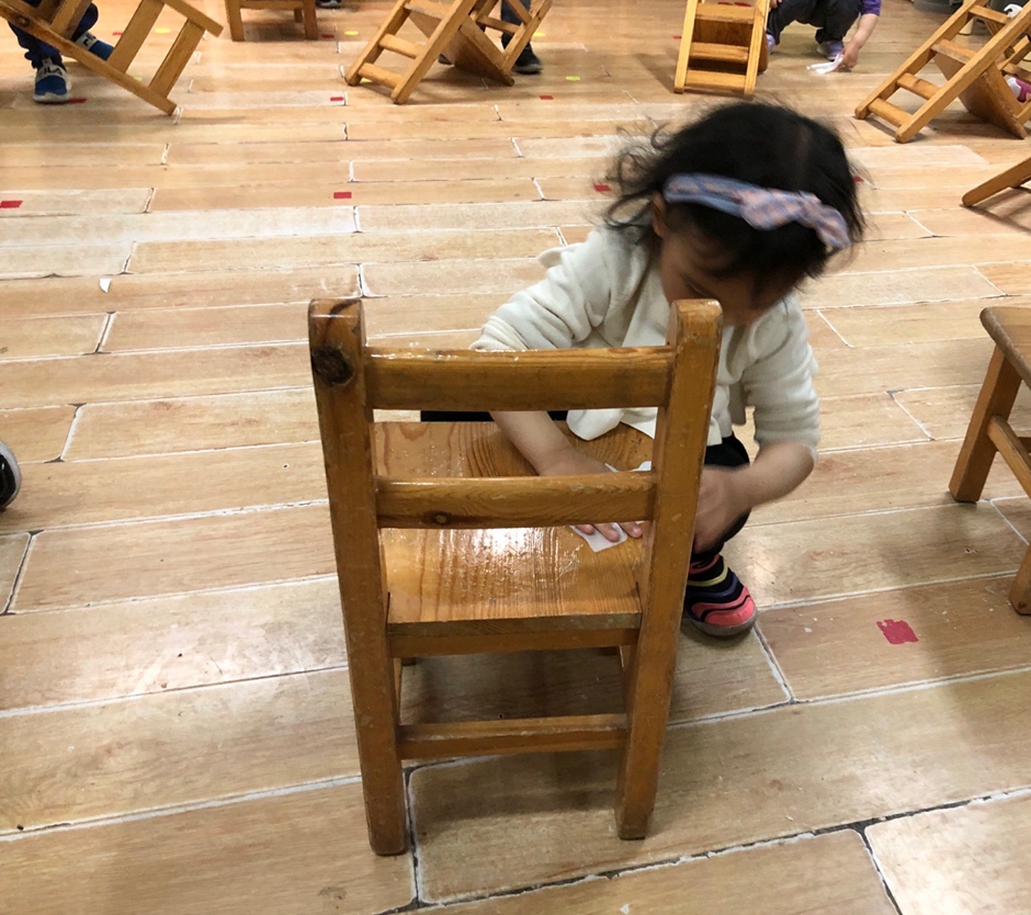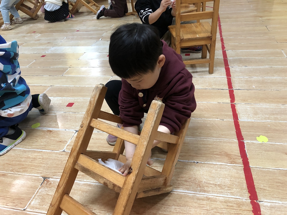 马上劳动节了,今天我们来动手擦了自己的小椅子,自己动手做事情真的很开心。