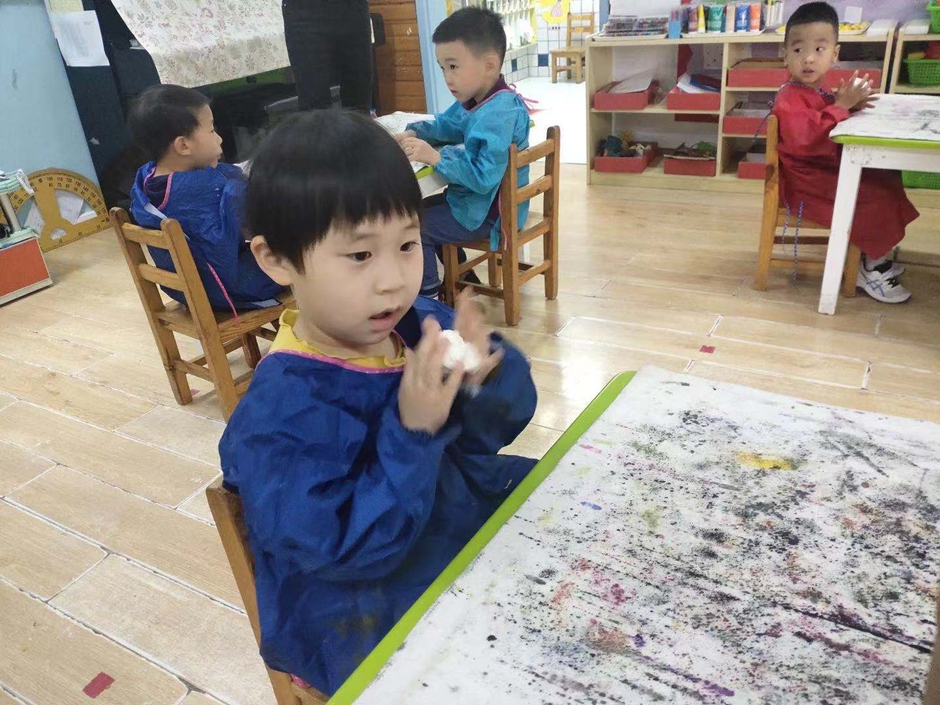 今天我们上了水墨画,第一次接触水墨画,我们非常喜欢,我们第一个作品是三原色,红蓝黄的颜色混在一起会有什么颜色认识了新的配色,很好玩。