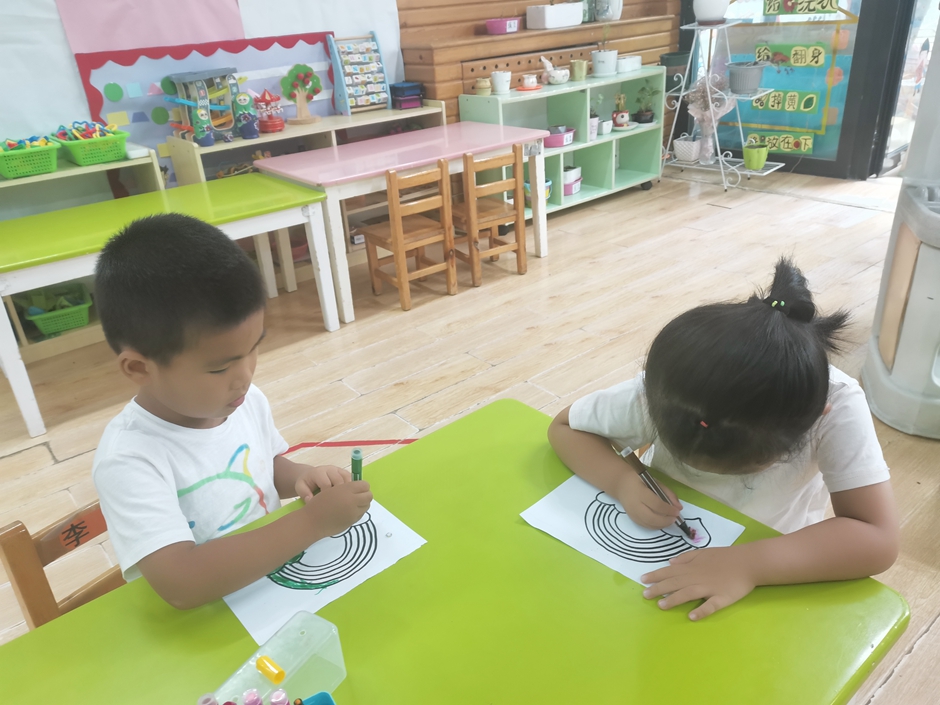 今天我们练习了涂色,用到了很多我们自己喜欢的颜色,现在我们涂色越来越棒了,不会再涂到线外面啦。