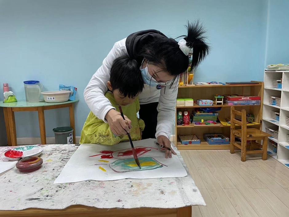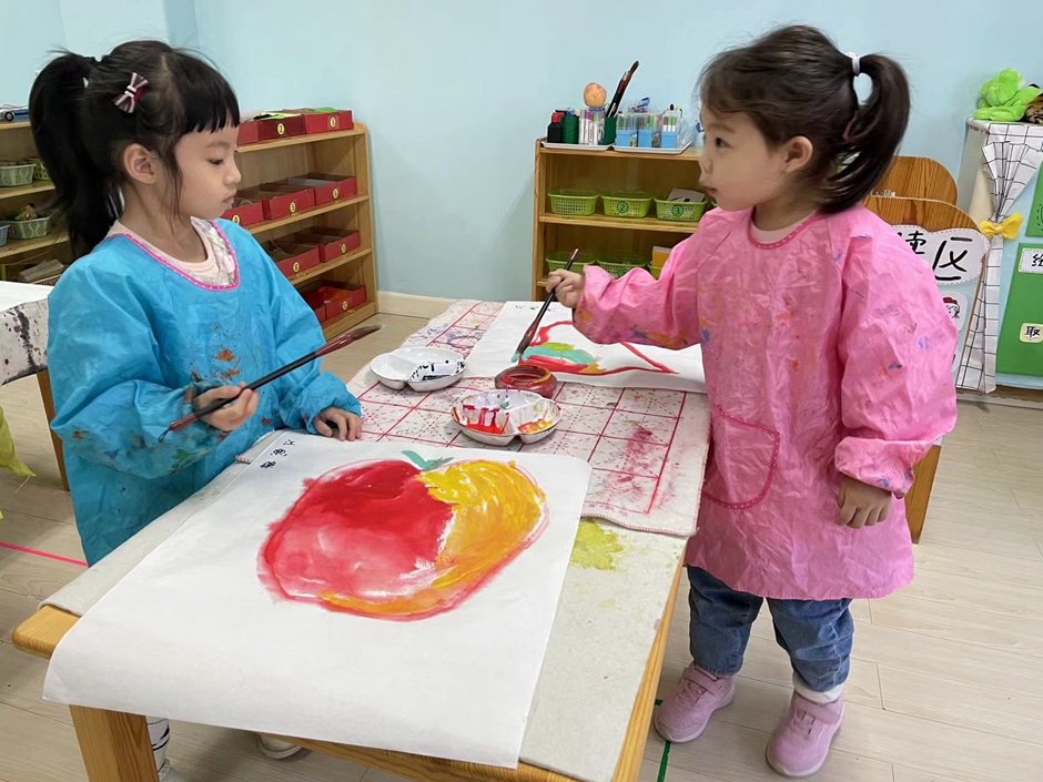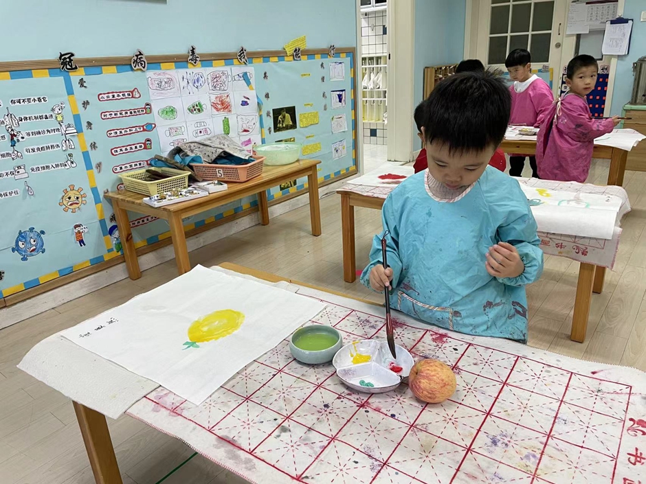 最喜欢的水墨画来啦,这节课我们画的是《苹果》,通过观察苹果的形状及颜色进行了创作。