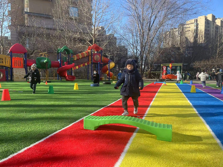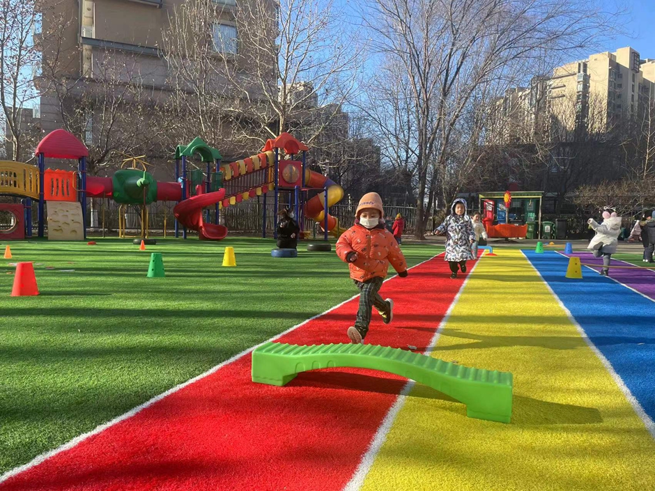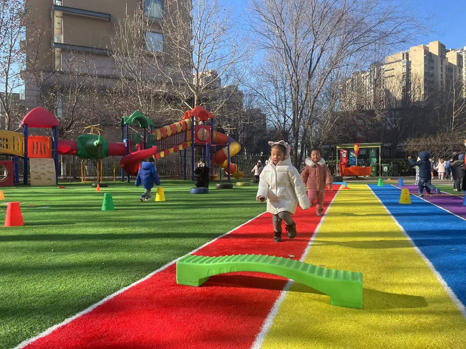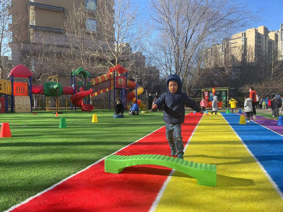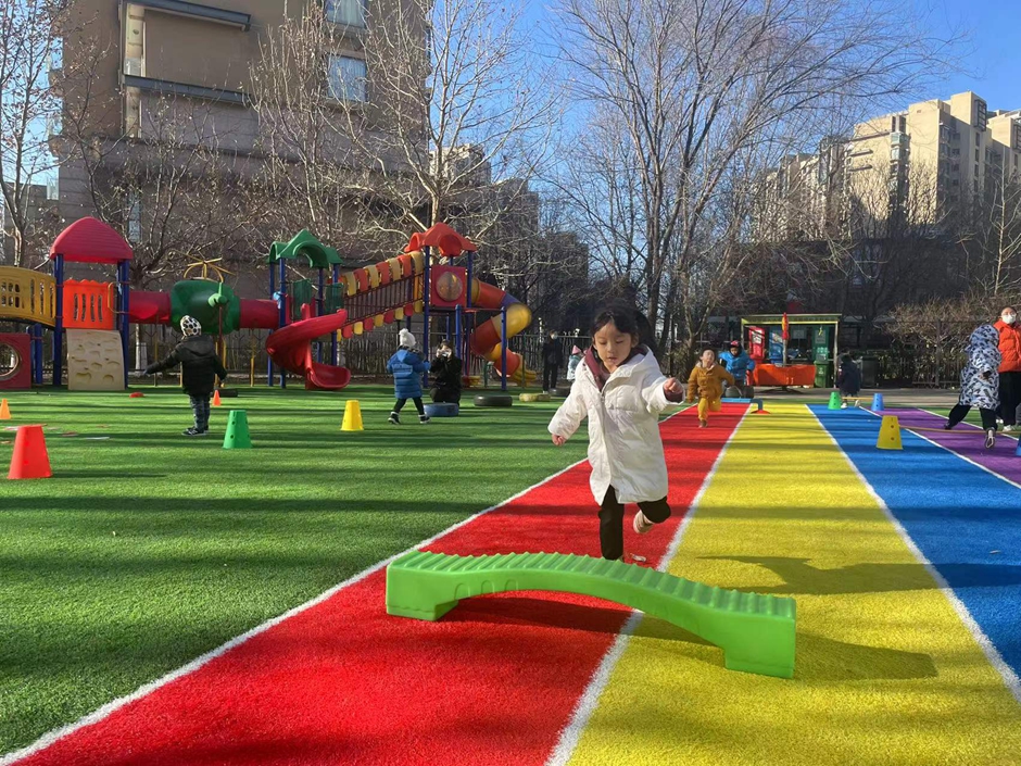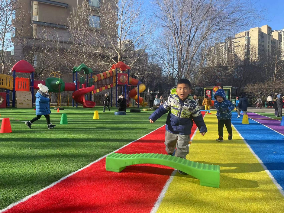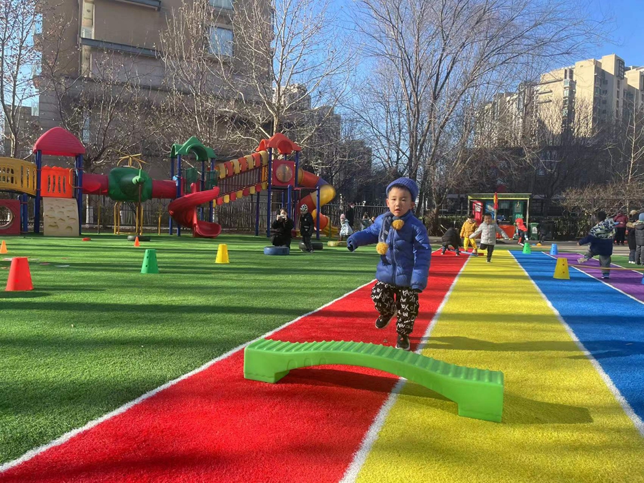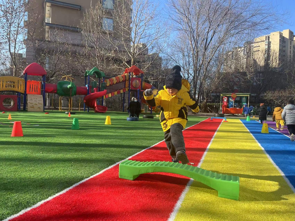 我们在练习助跑跨跳,一起来锻炼呀。