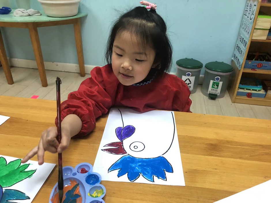 最喜欢的颜料,我们要给大公鸡穿上漂亮的衣服。