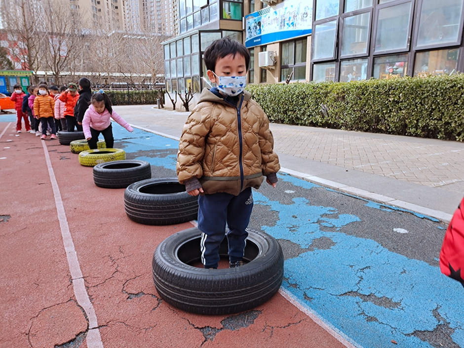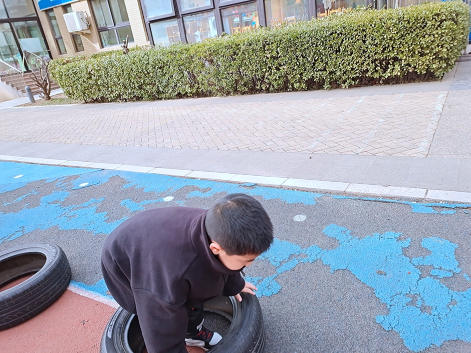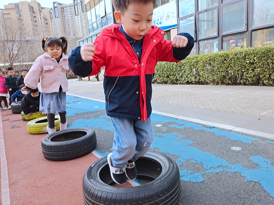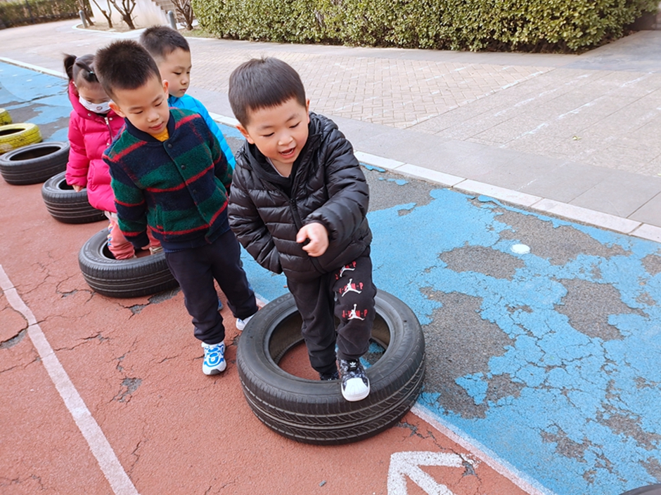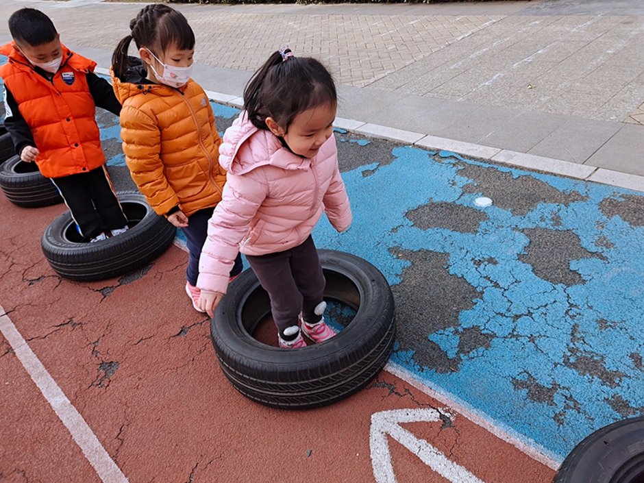 今天我们玩了轮胎,在轮胎进行跳跃活动。