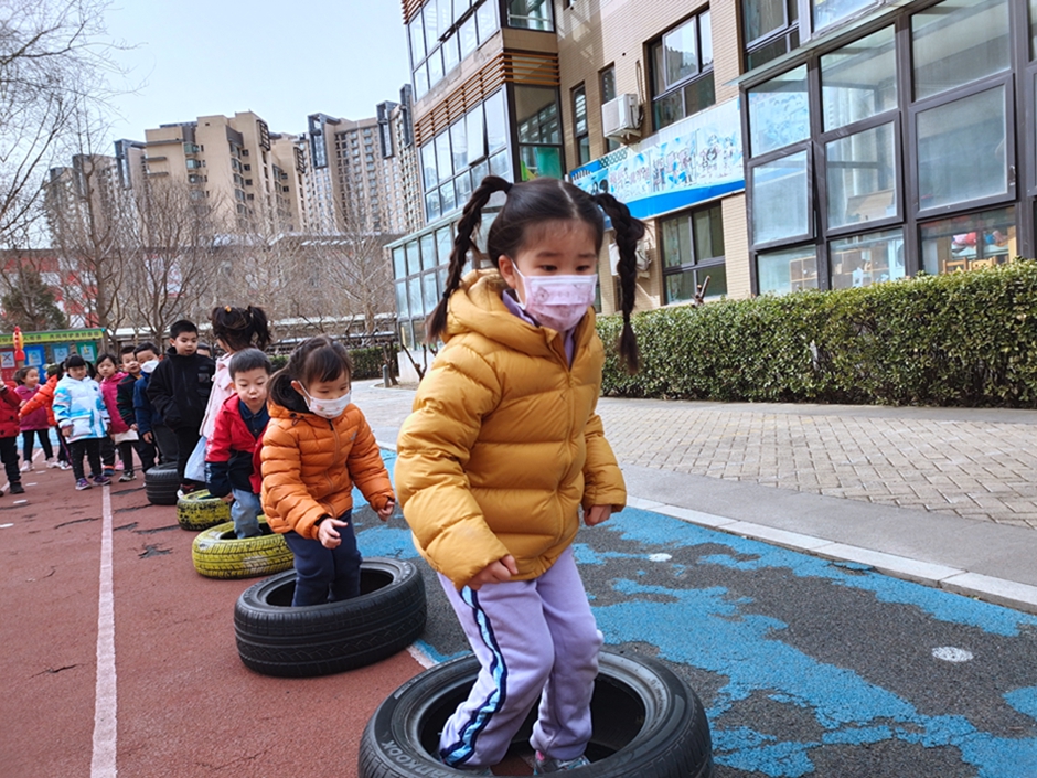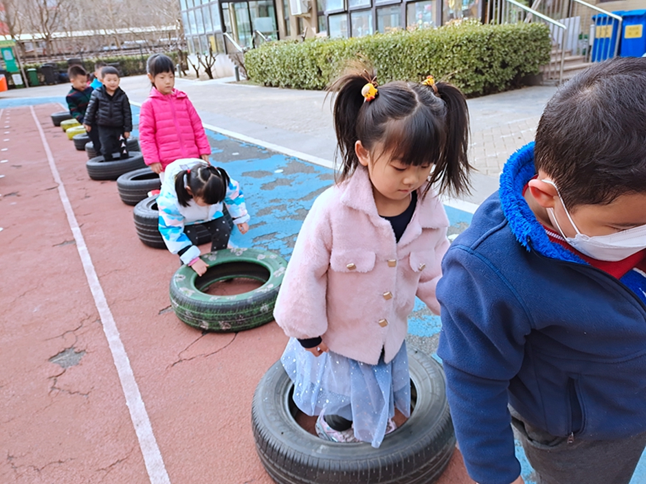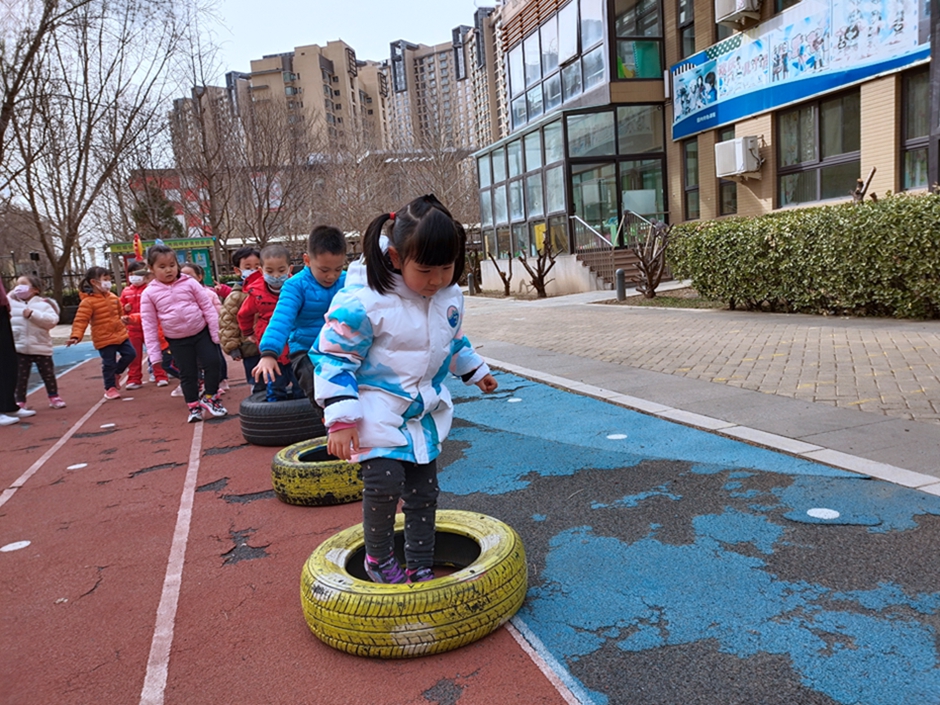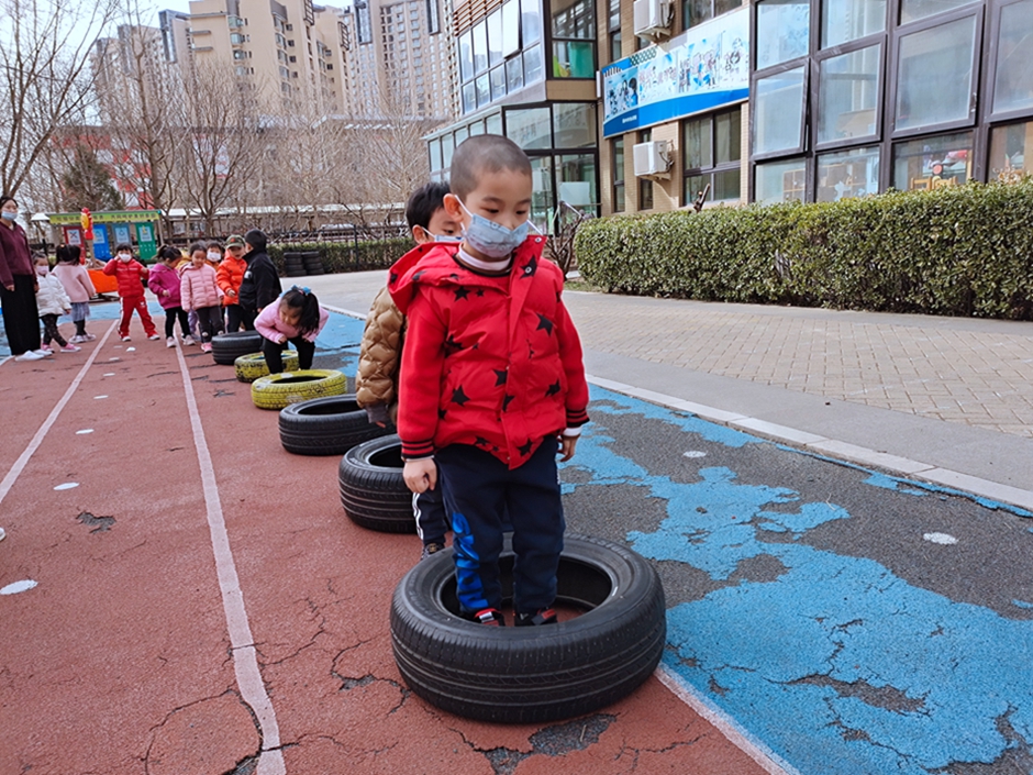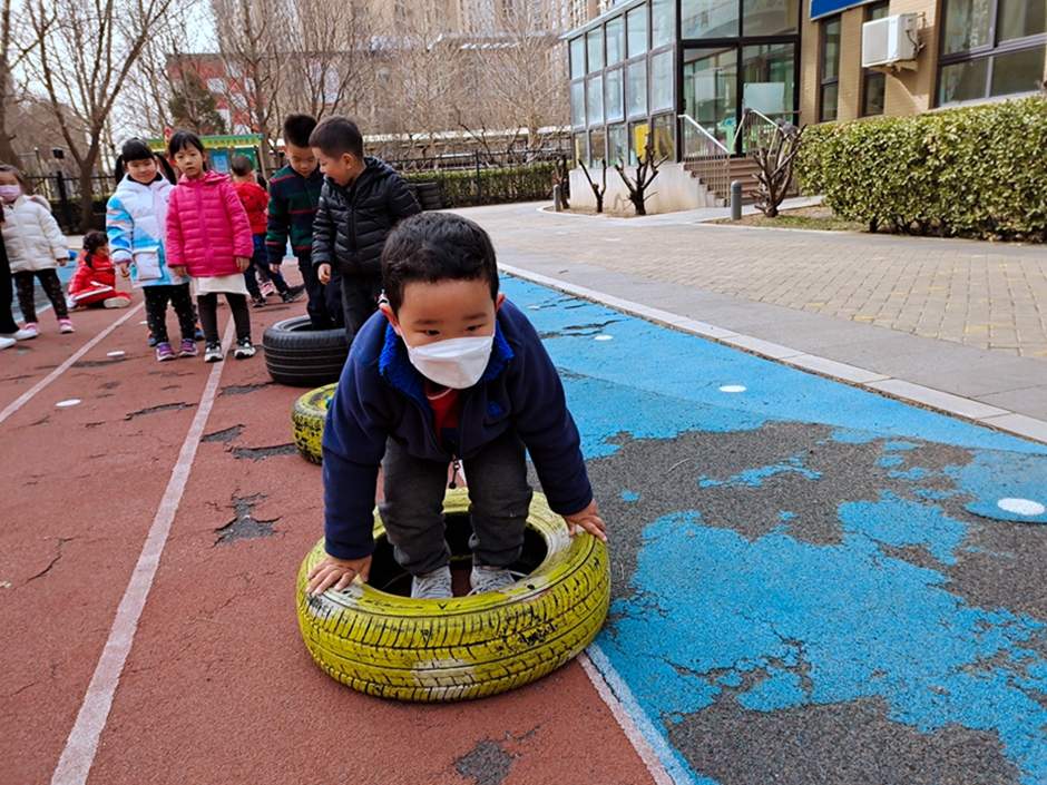 今天我们玩了轮胎,在轮胎进行跳跃活动。