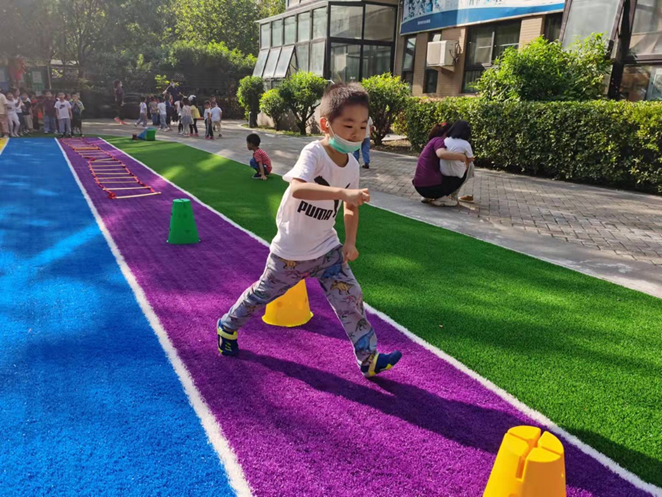 今天我玩了跳房子的游戏,运动起来的我好开心呀!