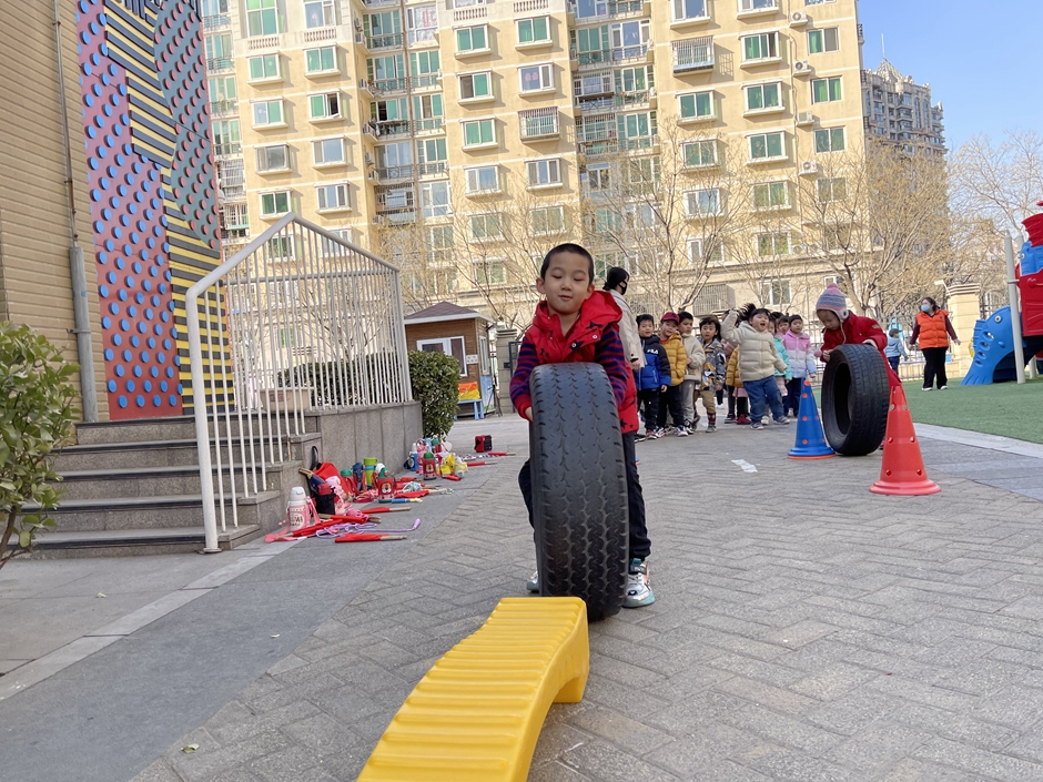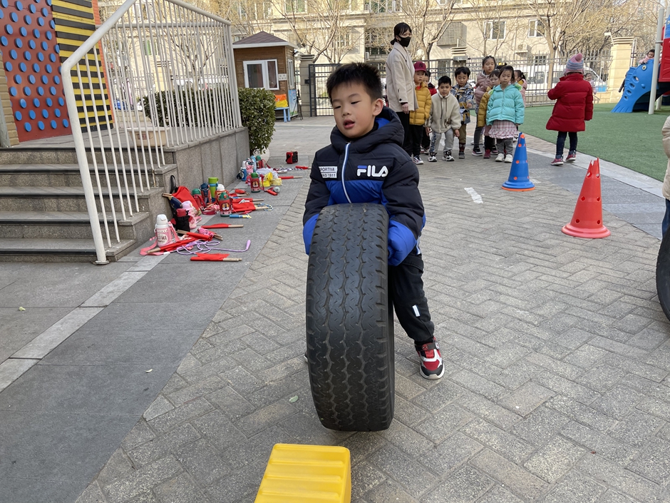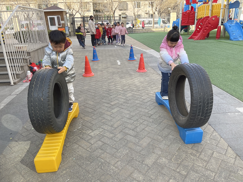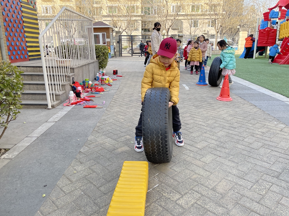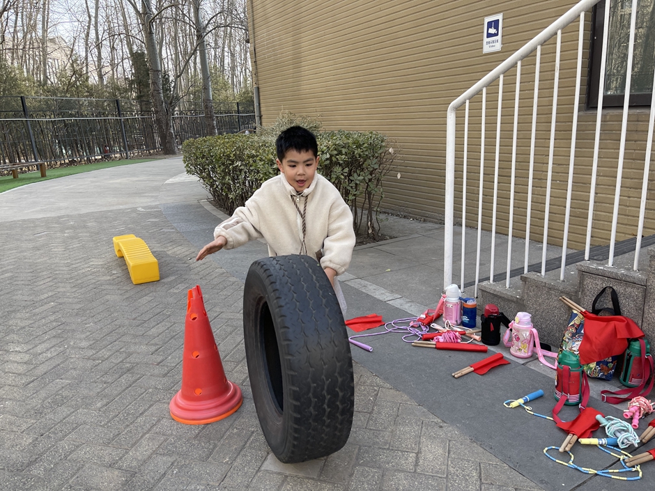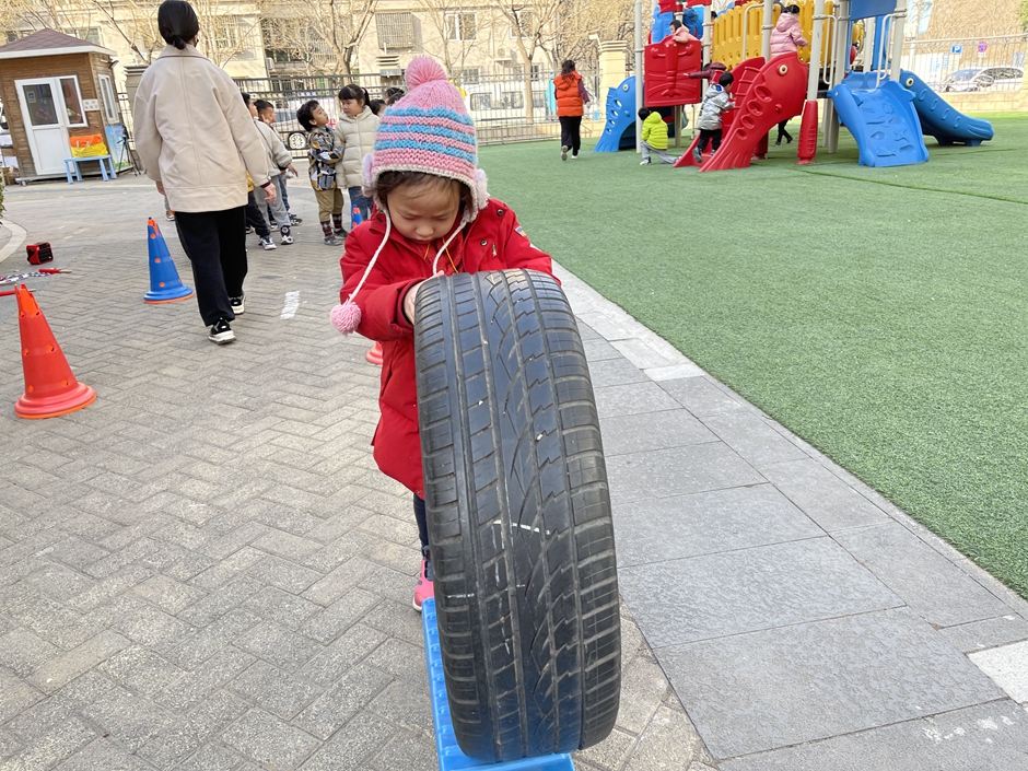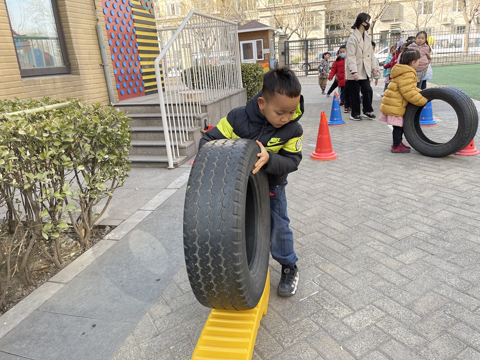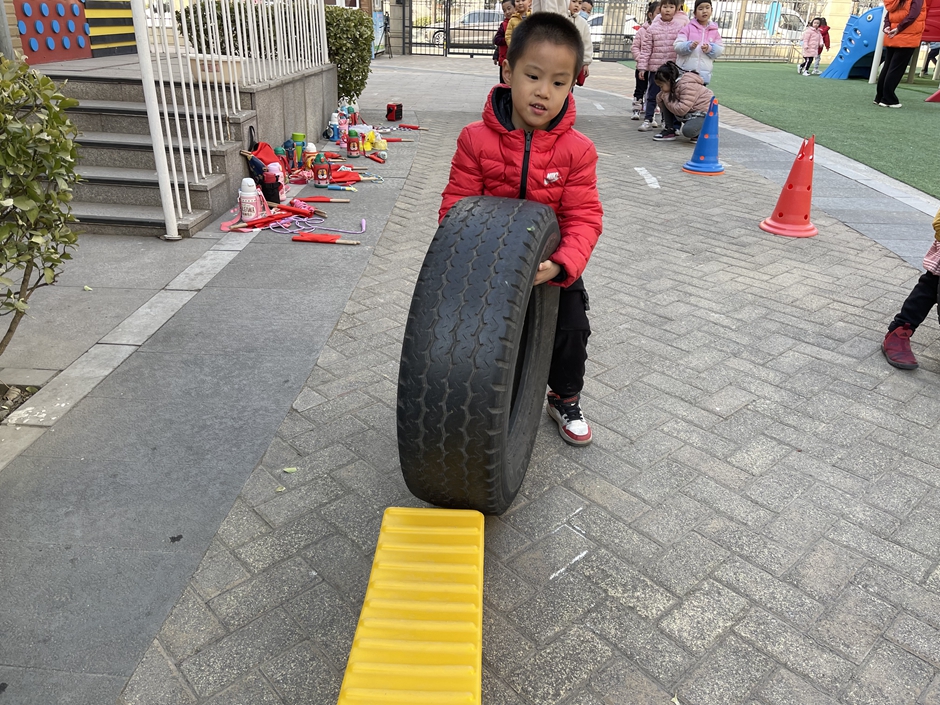 原来轮胎也可以这样玩呀~以后我也带着弟弟一起玩!