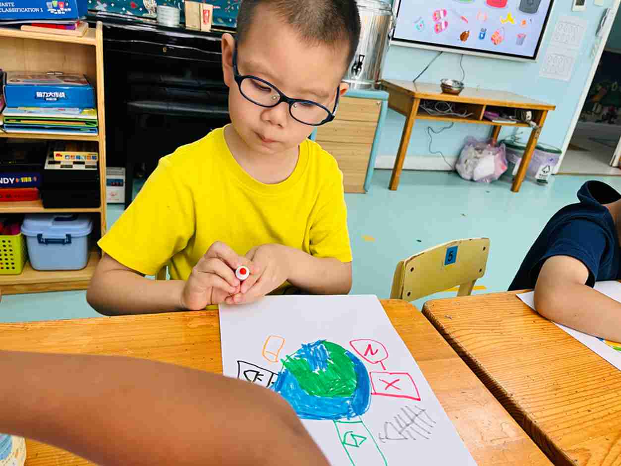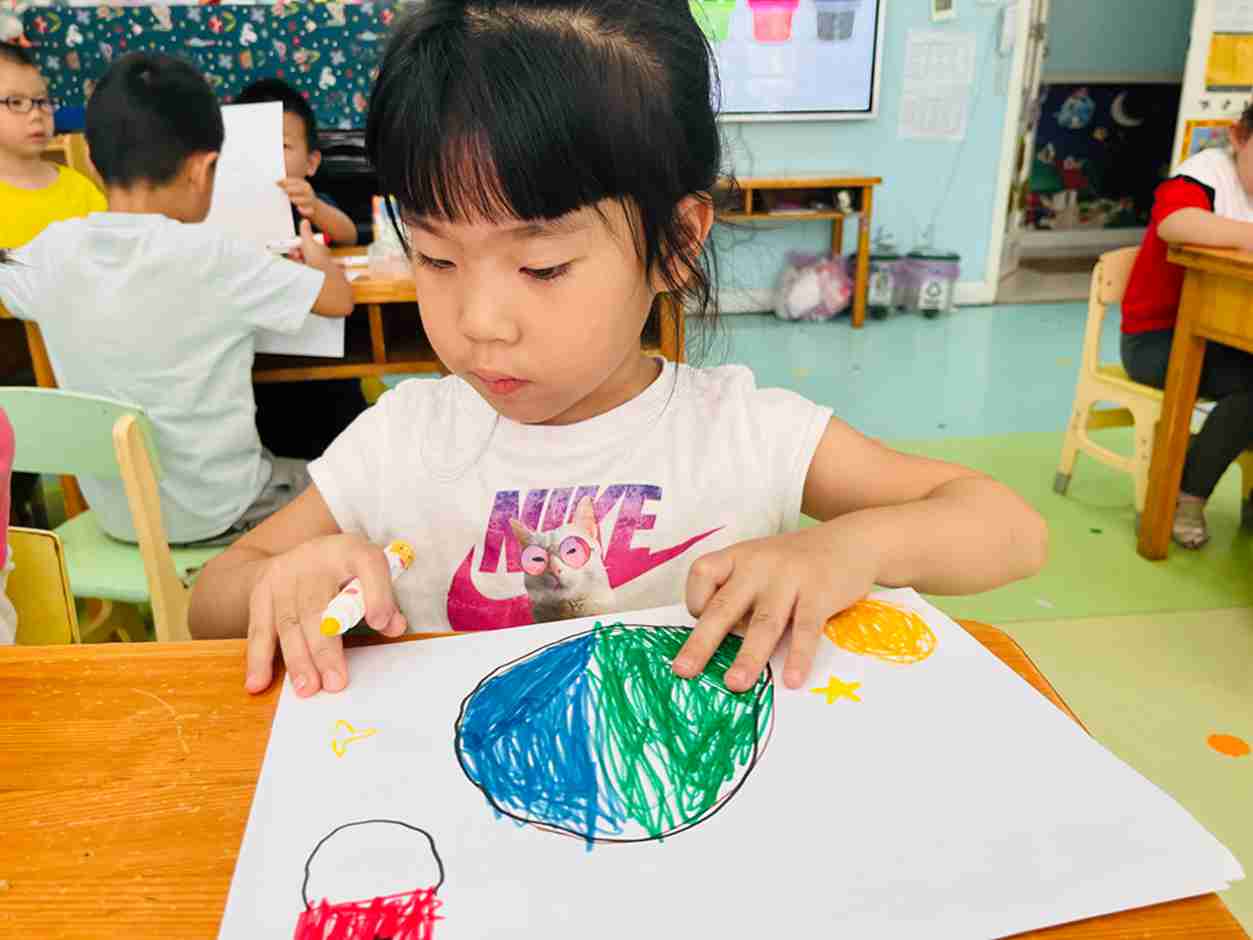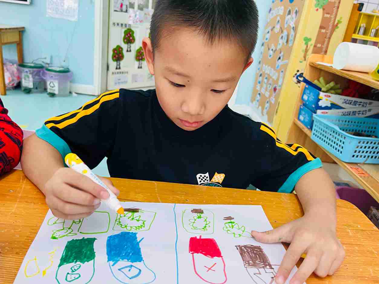 我们今天学会了简单的垃圾分类,看看我们画的怎么保护地球妈妈吧!