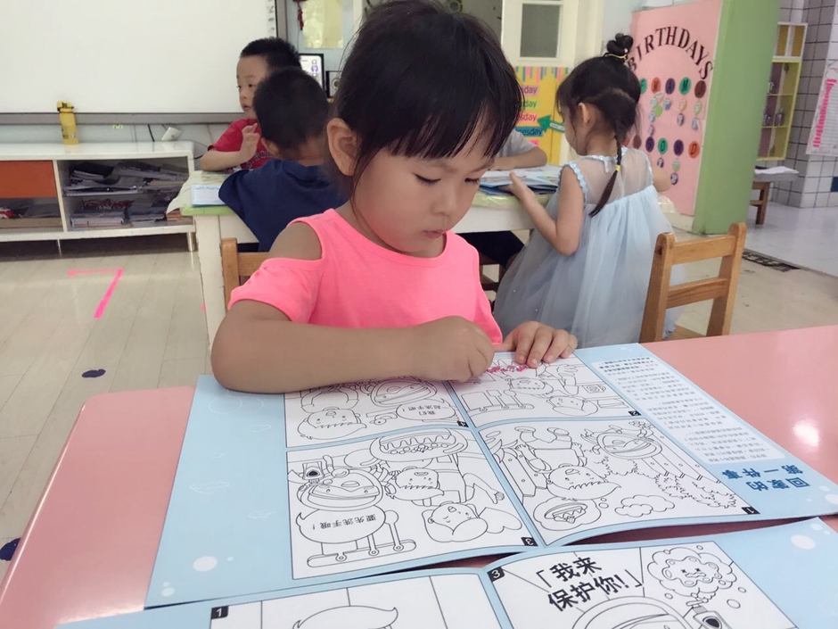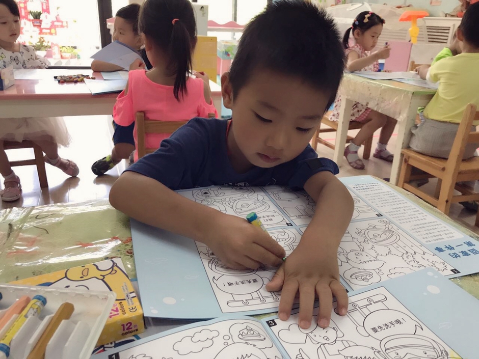 First activity was our hygiene class .It was a book provided by spray company they have all the hygiene products .In the book they had various excersise teaching them about the improtance of clean habbits .They were provided with the colors and had to color to a family potrait too . This book was very good to teach kids good hygiene habbits .