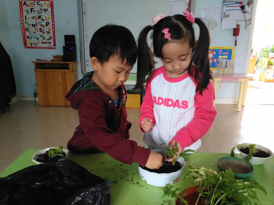 This week we had our kids to plant some garlic they will be responsible of the growth of the plant they have to water the plant and monitor the growth .Aim of this exercise it to get kids feeling of responsibility.