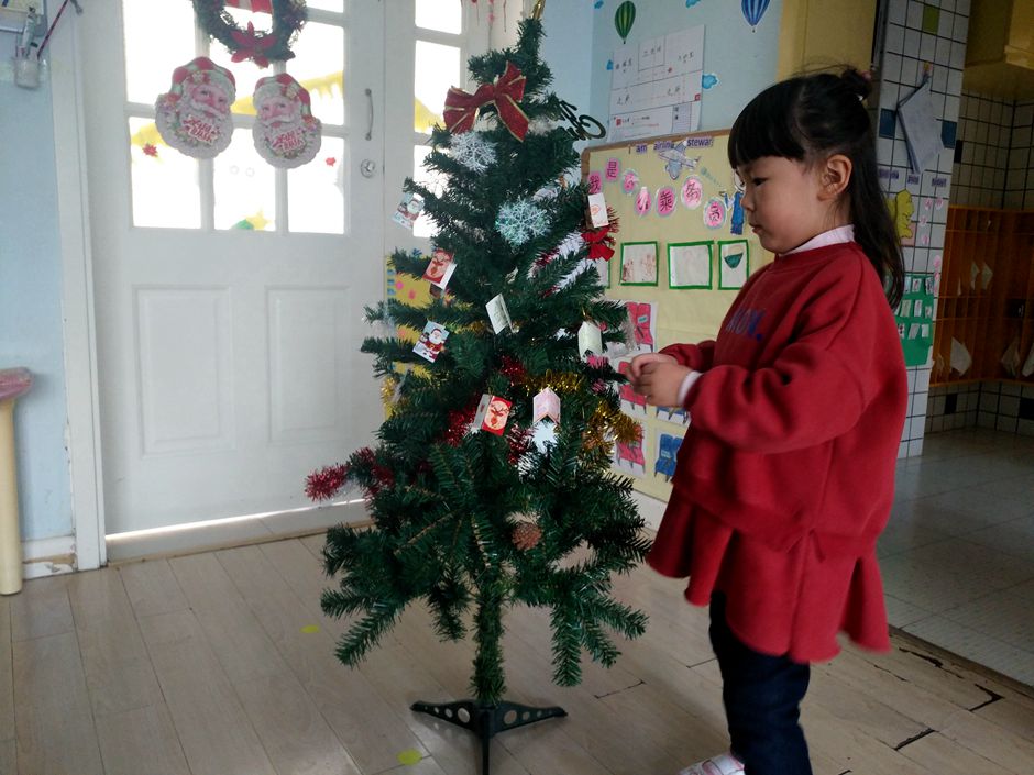 Teachers gave to the kids small postcards in order to make a decoration for the classroom Christmas tree. Sit them well and gave instructions to draw themselves and their the most desirable toy they want to ask Santa for Christmas, so he could come and see it right in our tree