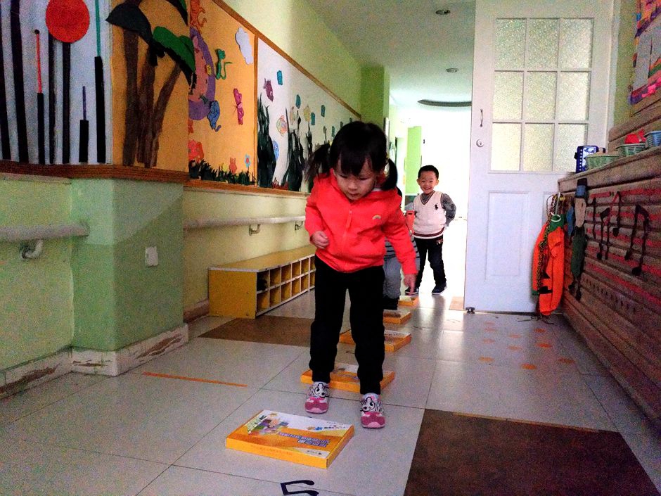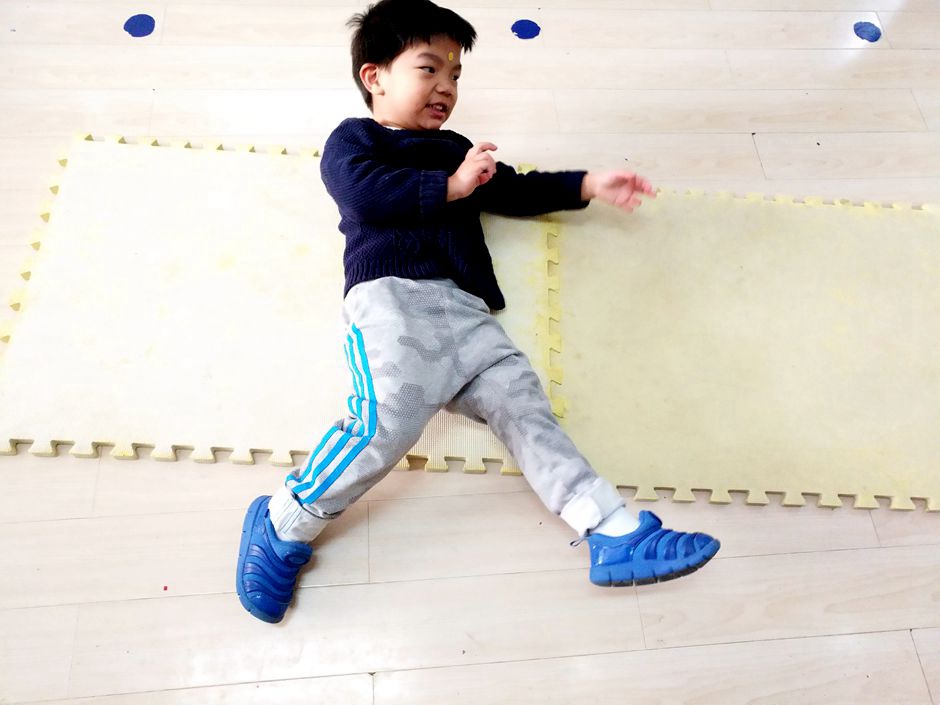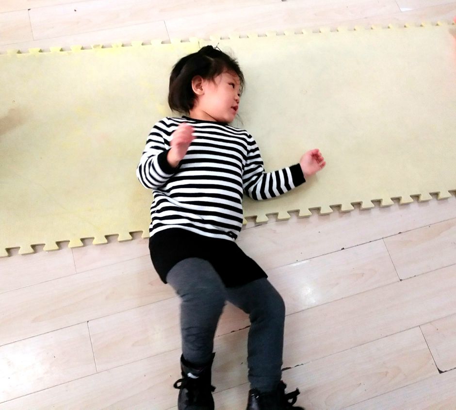 Kids rolling on the floor mat to cross the hurdle rolling on the mats is good for physical health .