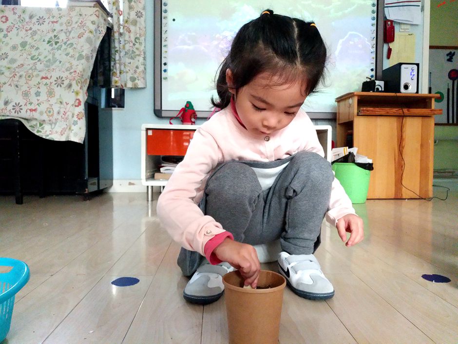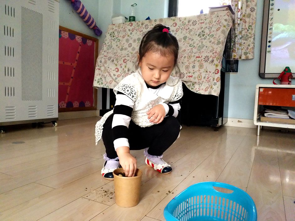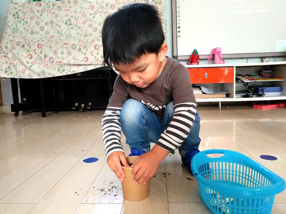 Kids are planting garlic in a pot as a part of our activity class so they can learn some gardnening tips .