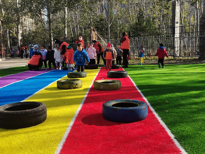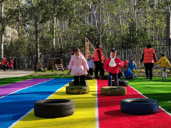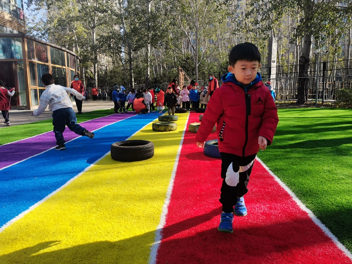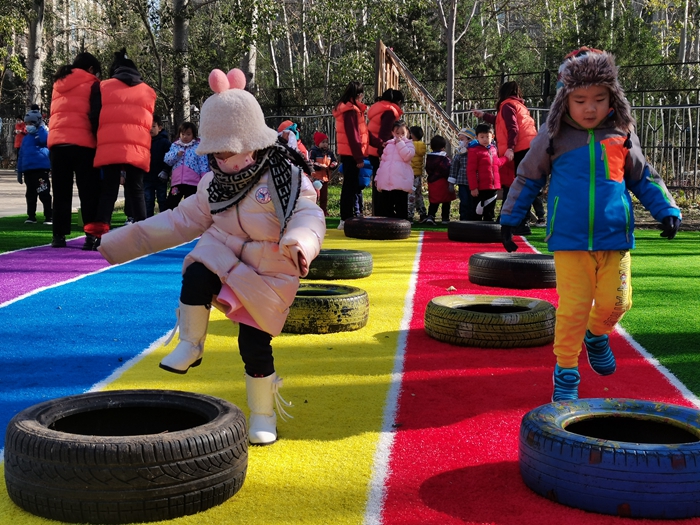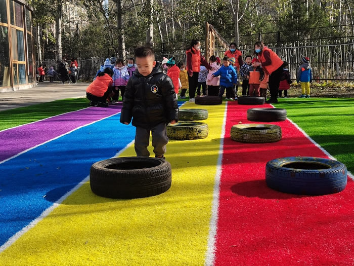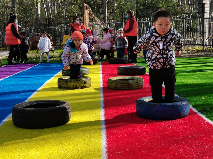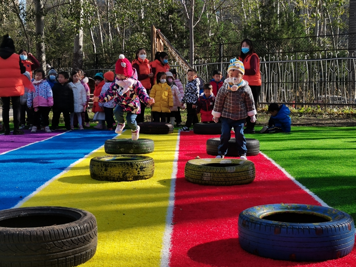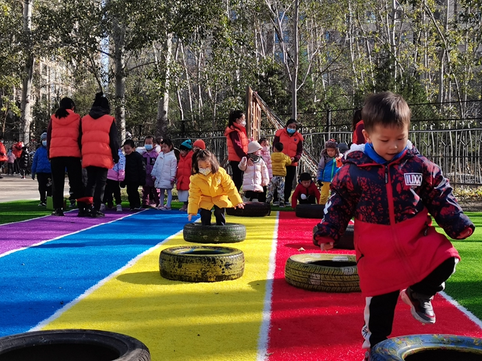 我们今天变成了小兔子和小朋友比赛跳跳跳