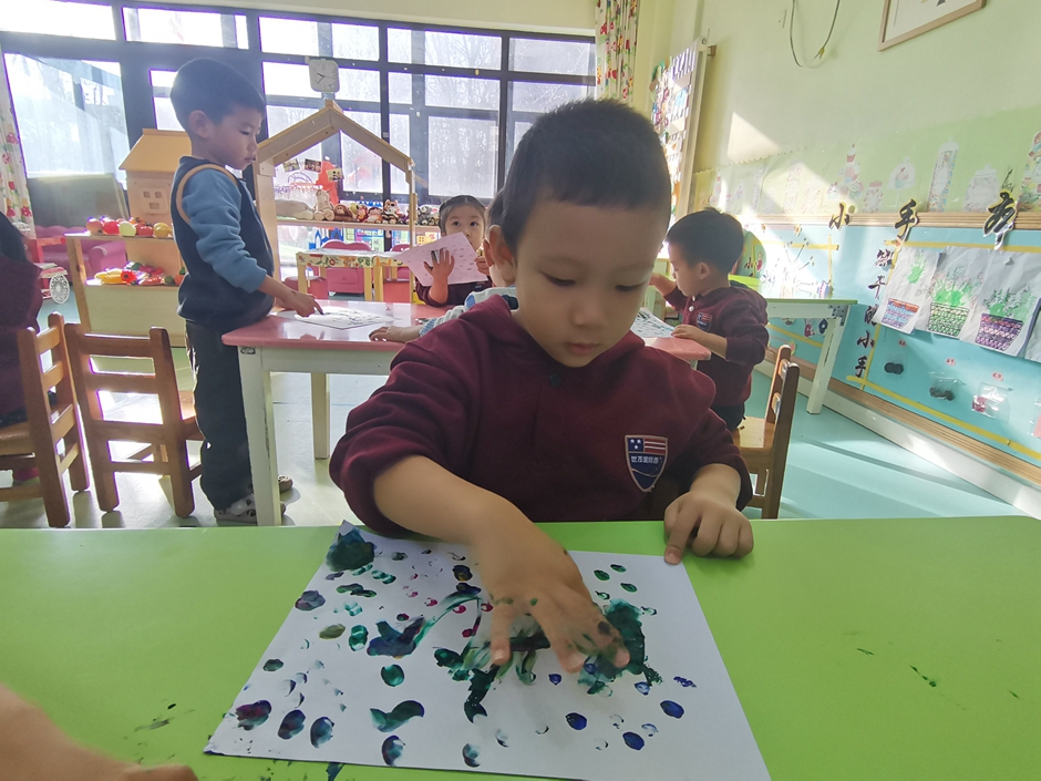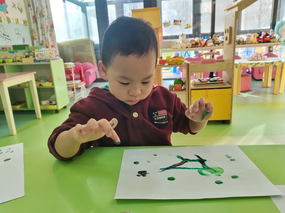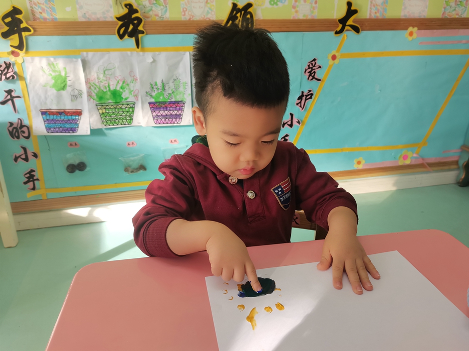 使用小手蘸上颜料宝宝