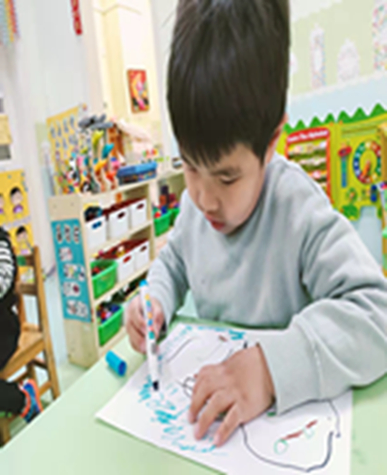 因为画小草的时候下雨啦,所以我们还画了小雨滴哦!
