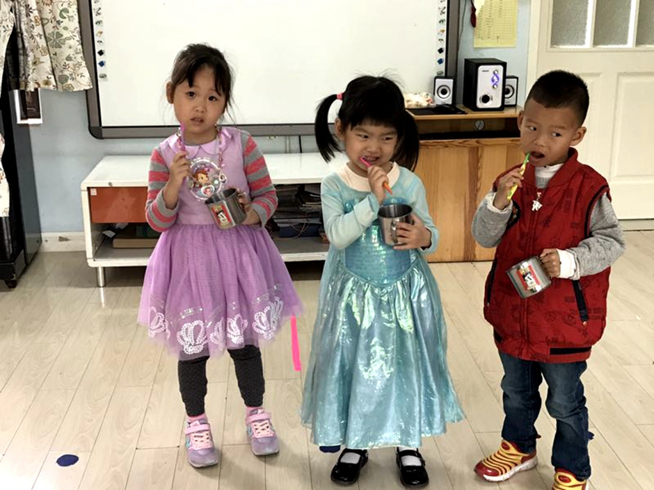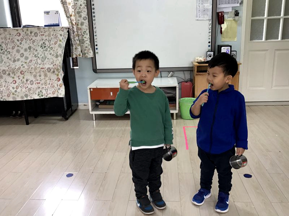First sctivity was dental hygiene class is this class our teachers tought them how to brush their teeth now kids have to brush their teeth in the afternoon before they have a nap .so this session was to teach them how to do it in a proper way .