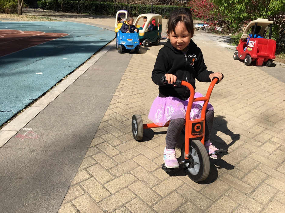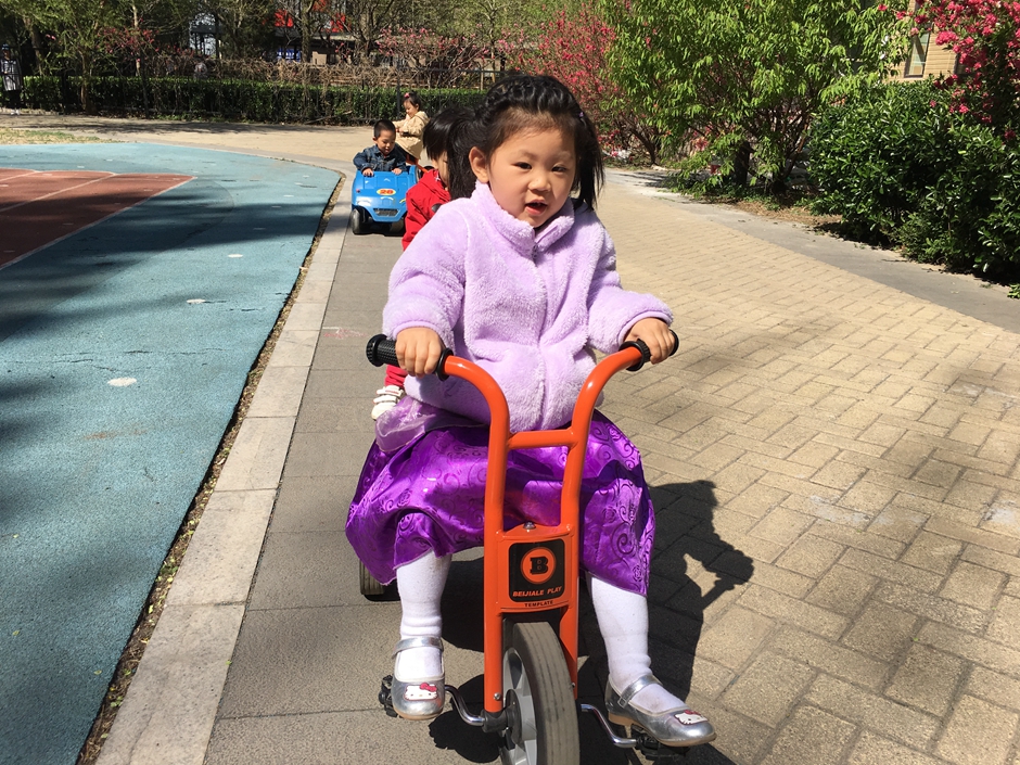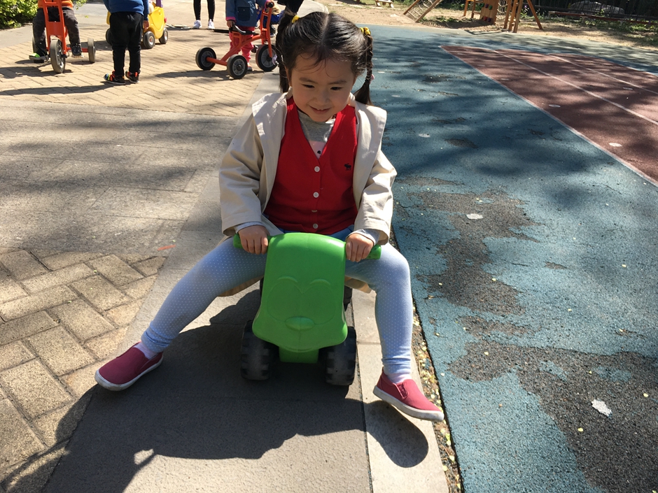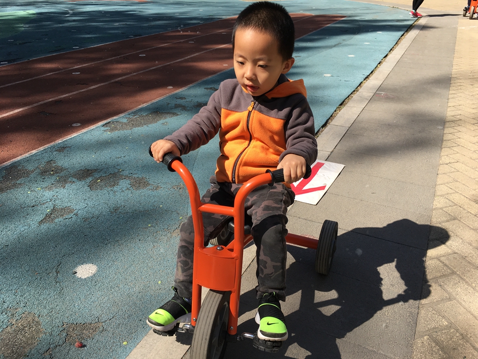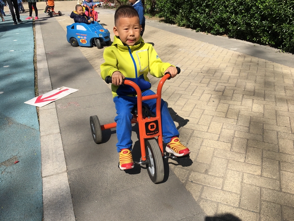 Second activity was out door rides in our playground activity kids had to cross the drive ways with various signs so kids can have a basic ides of traffic rules . It is a hard activity for kids as balance and body control is required . Our main aim was to have fun with kids but in a very safe environment and increase there physical strength and learn traffic rules . This activity was very good for kids for their physical balance and strength while having fun all the kids participated and had a lot of fun .