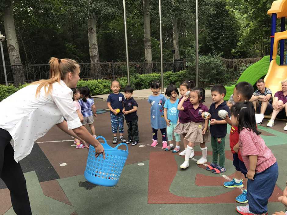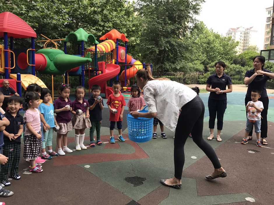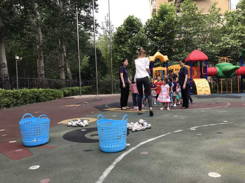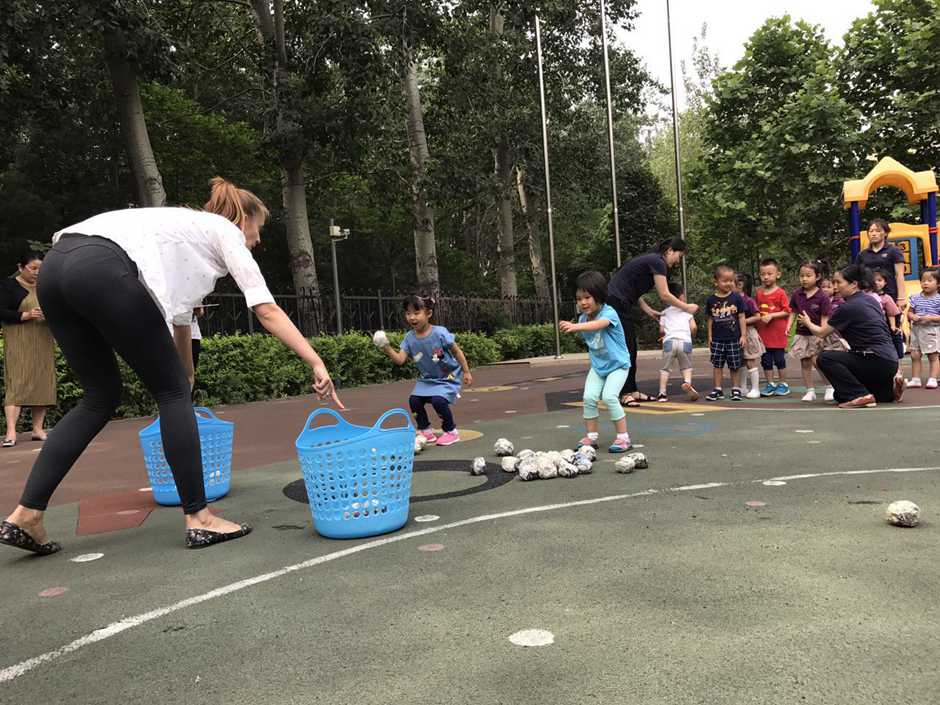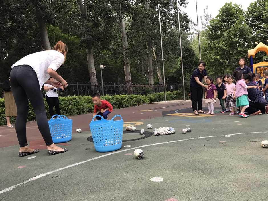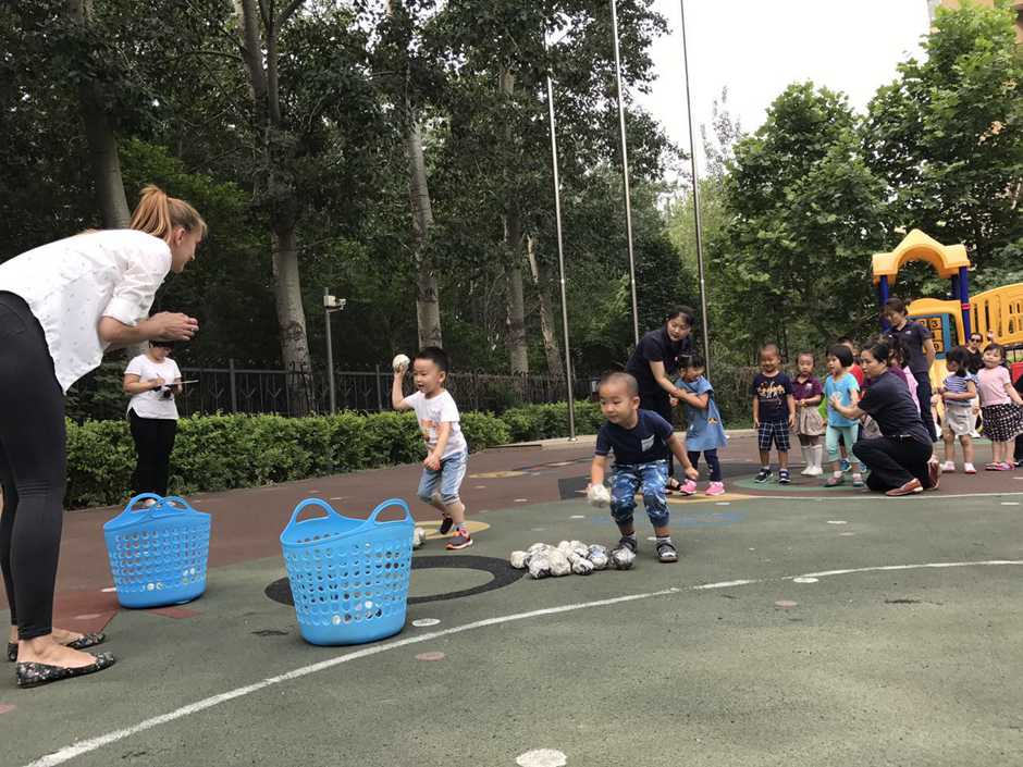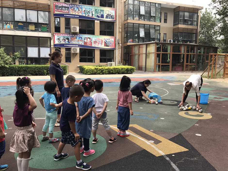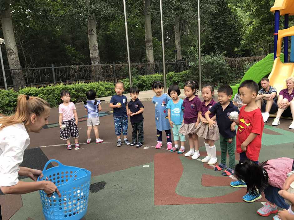 3) The main point of that outside activity was to make a small competition between kids. Teacher divided kids into two teams and which team first (one by one) run to the balls and put their balls in the basket will win!