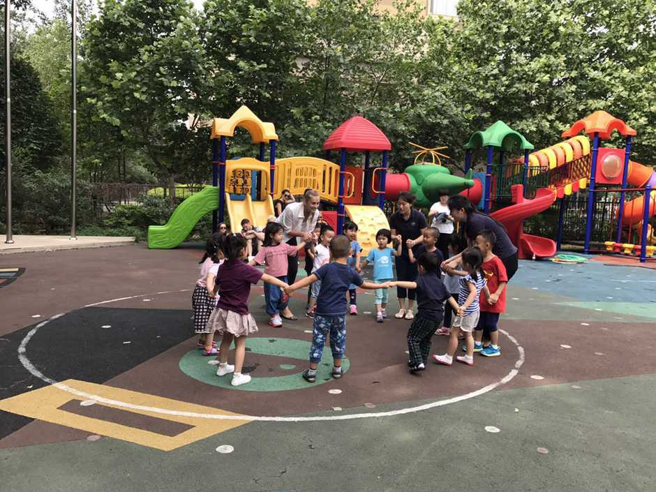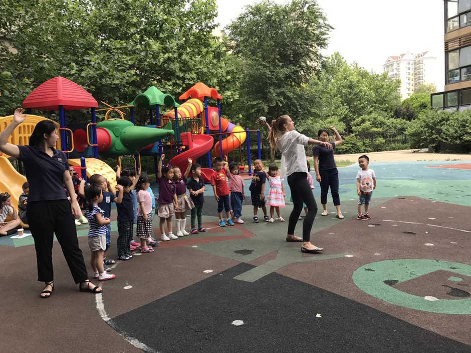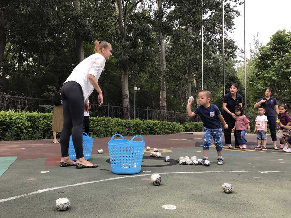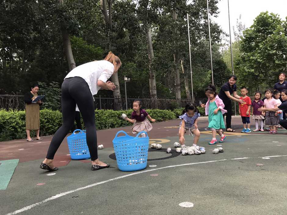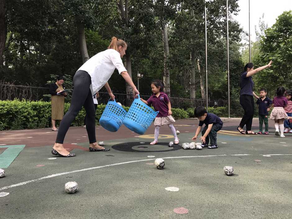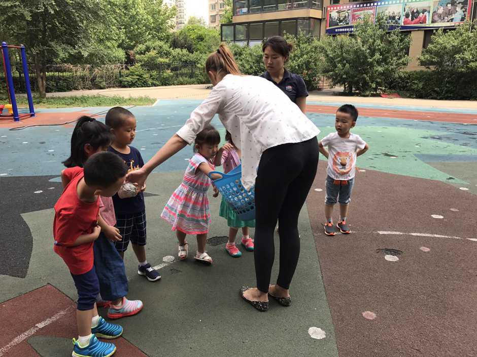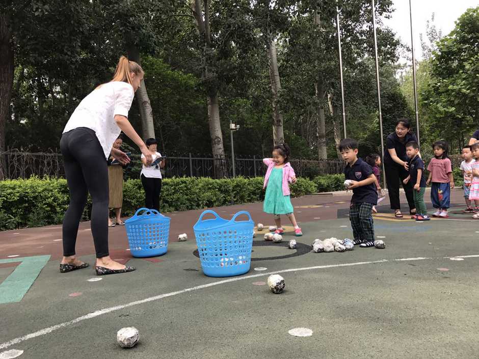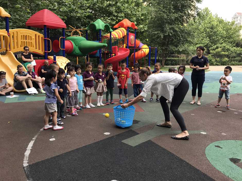 3) The main point of that outside activity was to make a small competition between kids. Teacher divided kids into two teams and which team first (one by one) run to the balls and put their balls in the basket will win!