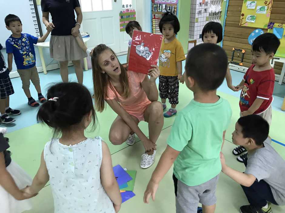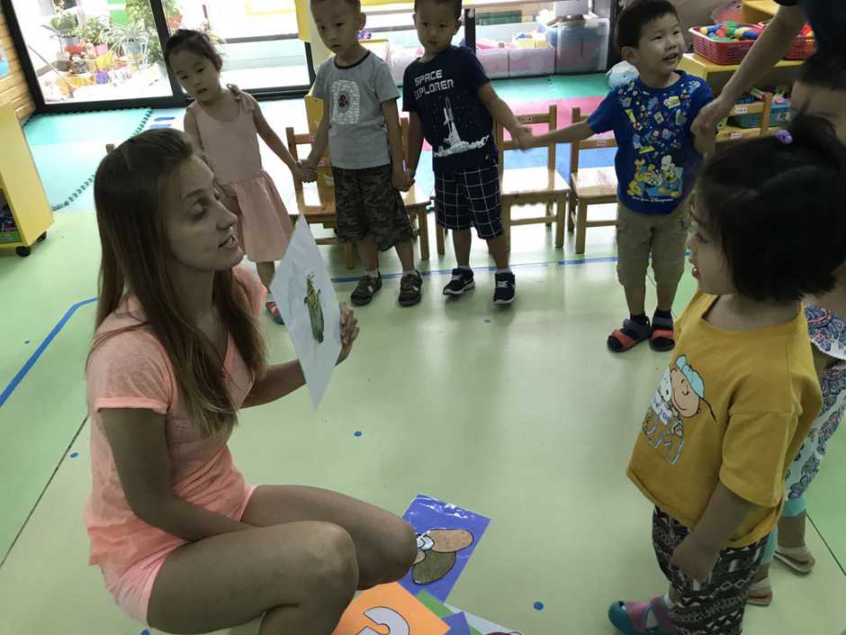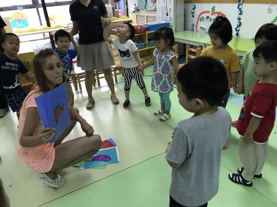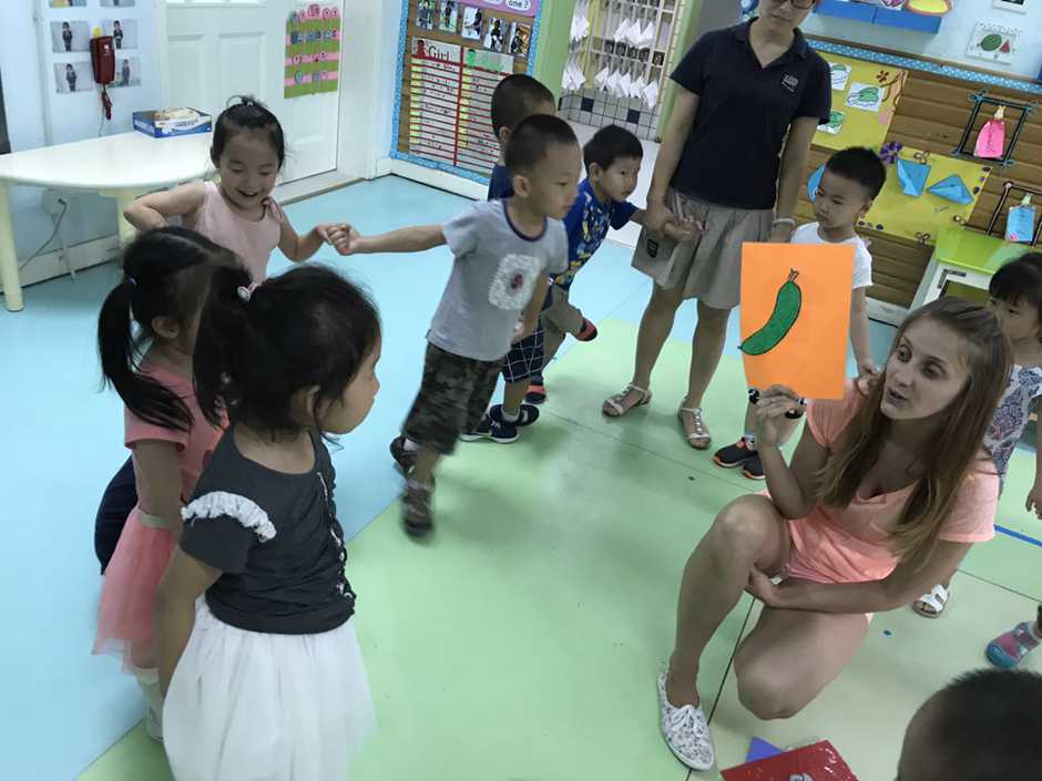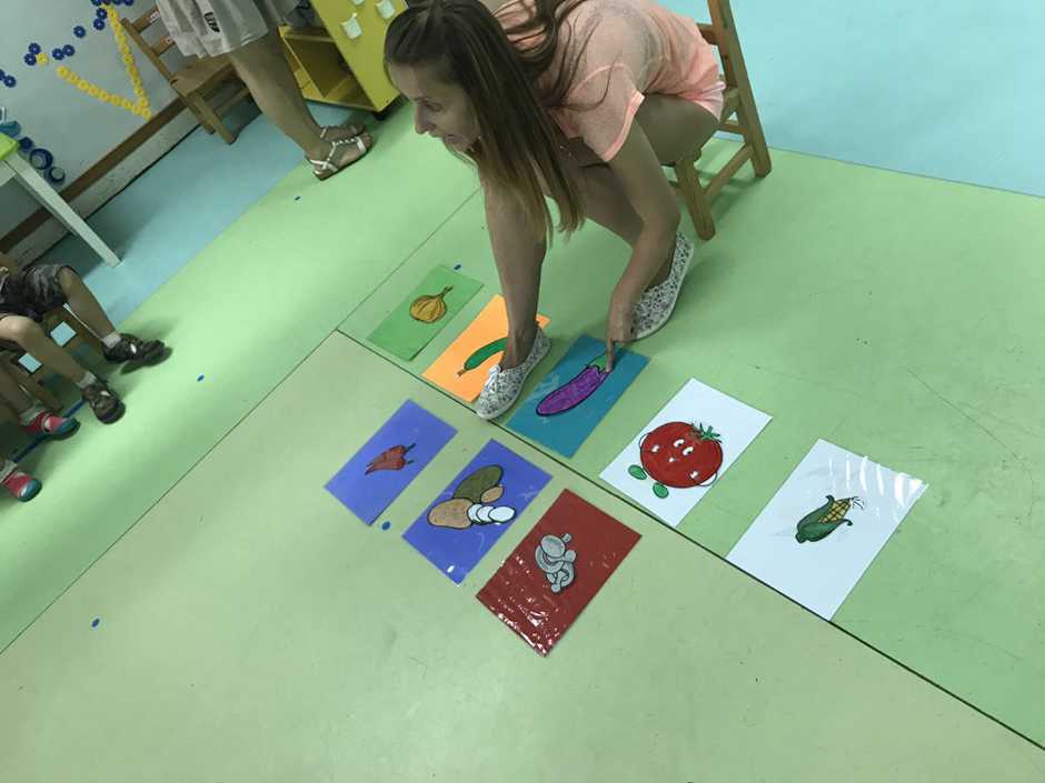 At the beginning we repeated all words we learned before and after we played “upside down circle” when kids move one way and teacher moves opposite way with closed eyes. Kids were singing a song and when the song was finished teacher had to catch one child and ask him/her a question he/she wanted.