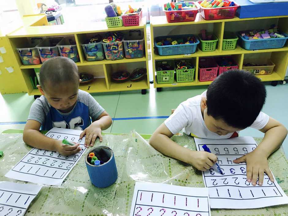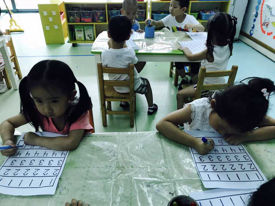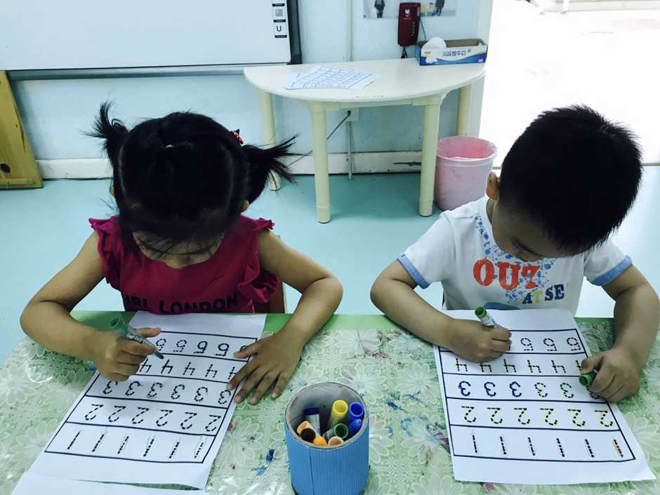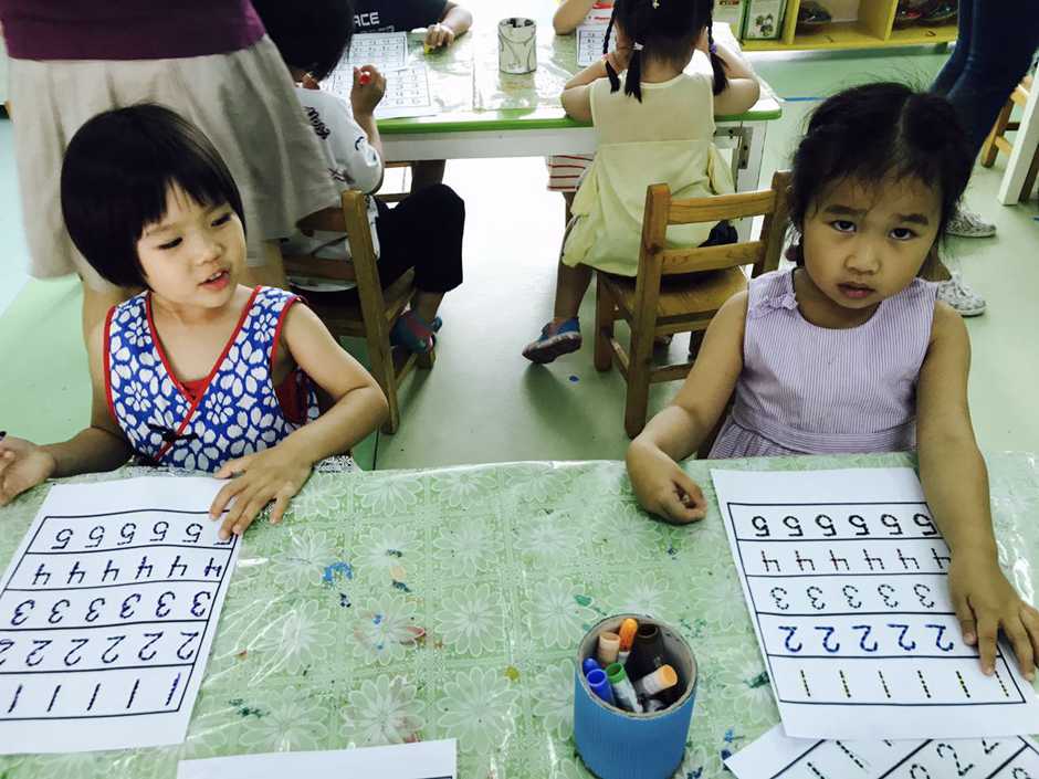 Last week we been practicing writing numbers from 1 to 5. That was easy for kids to do that, but this morning we tried to practice it one more time!