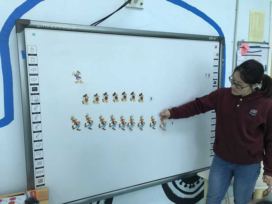今天,我们通过有趣的动画形象唐老鸭、米老鼠和高飞来感知8、9的形成,理解8、9的实际意义。