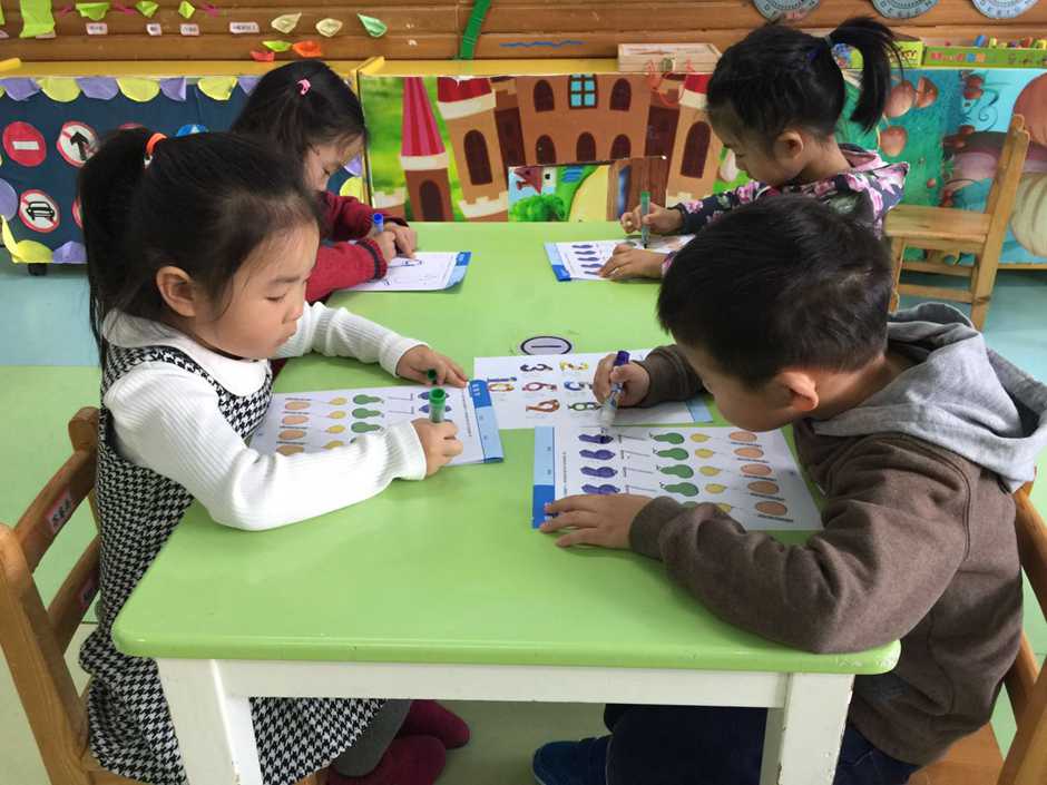 This activity was focused on developing of numbers writing skills. At the beginning teacher and kids reviewed all numbers from 1 till 10 and tried visually identify every number that teacher showed them.