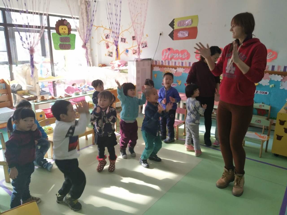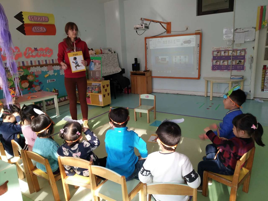 At the end we played a game. Kids are very naughty and really like to move as more as possible that’s why for practicing new “action” words we were playing “Simon says jump 3 times” - “Jump jump jump”.