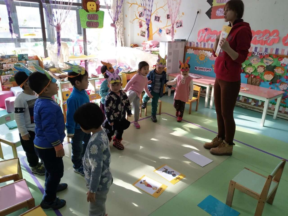 After kids give right answer we put on rabbit masks and pretend that are rabbits. The same way we practiced another few words.