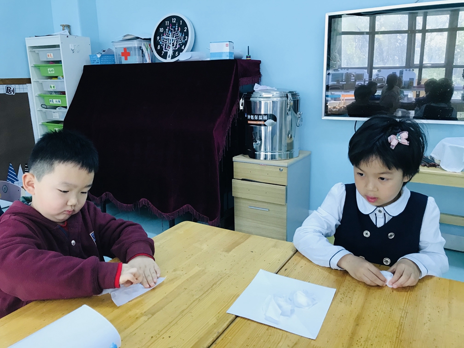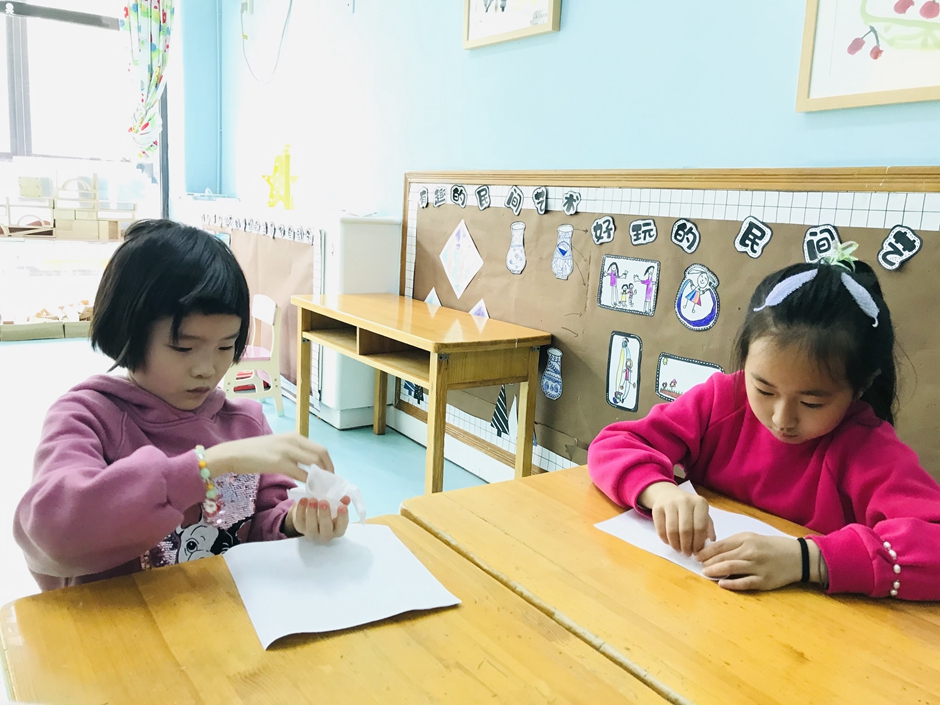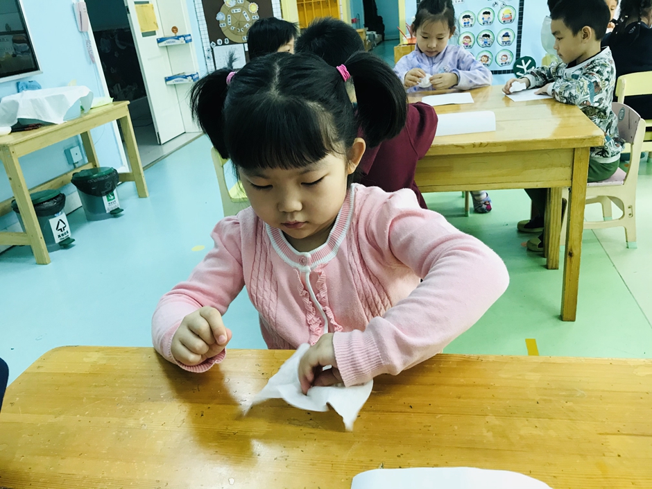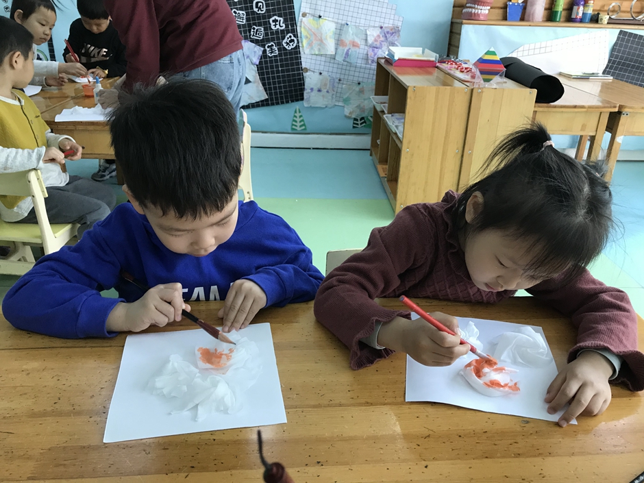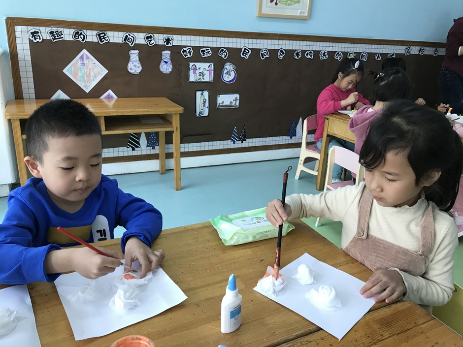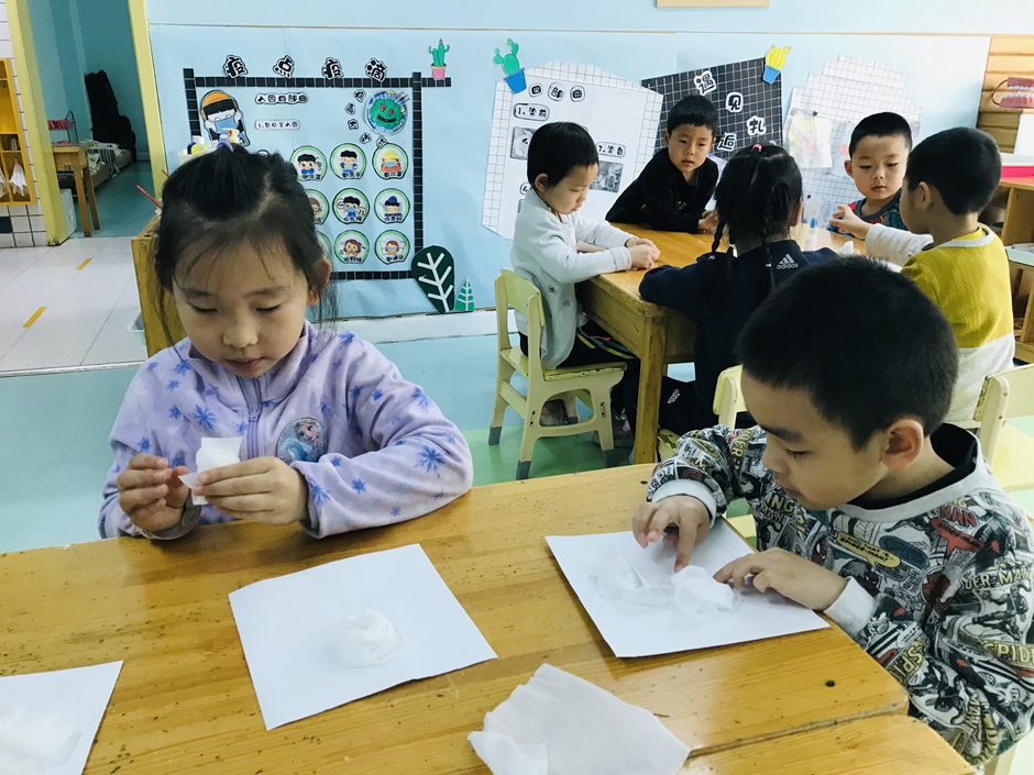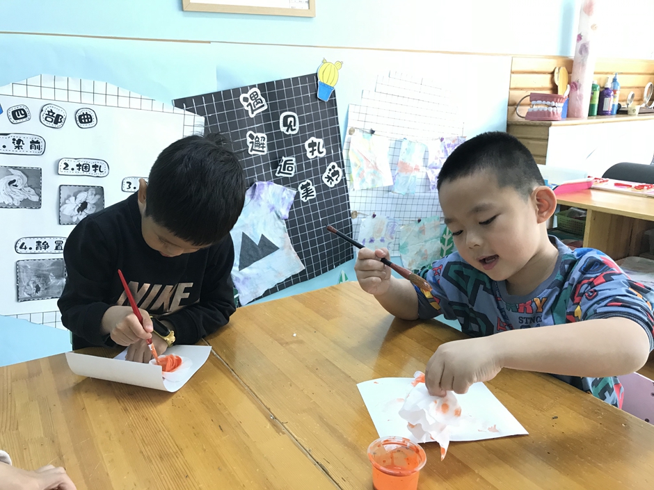 今天我们和老师、小朋友一起做美术扎染