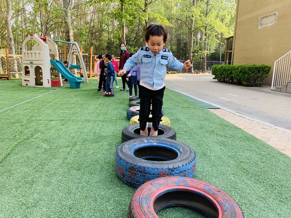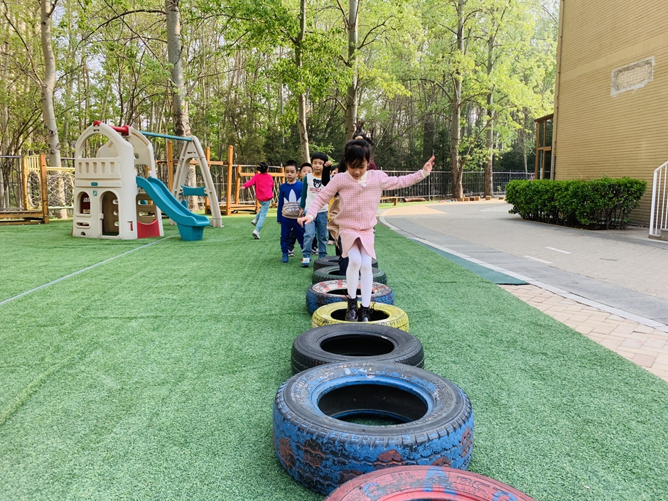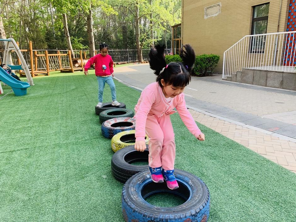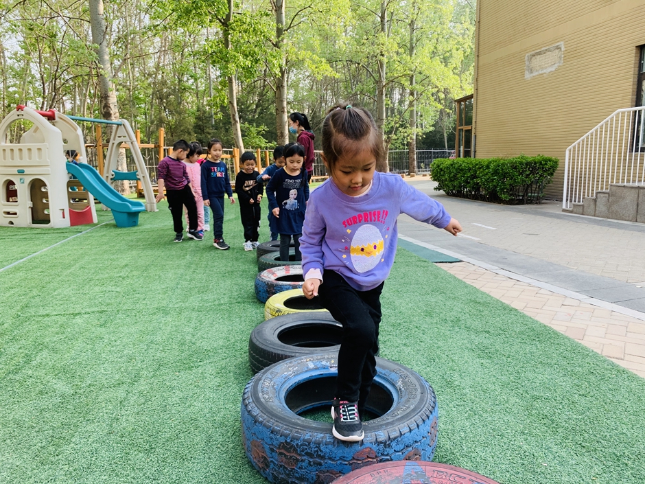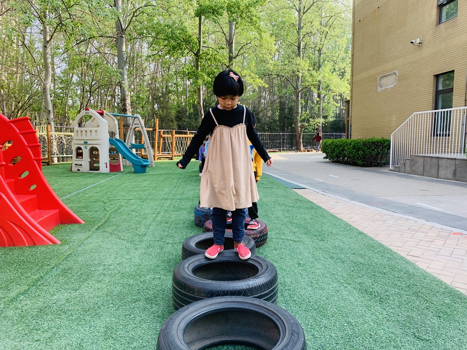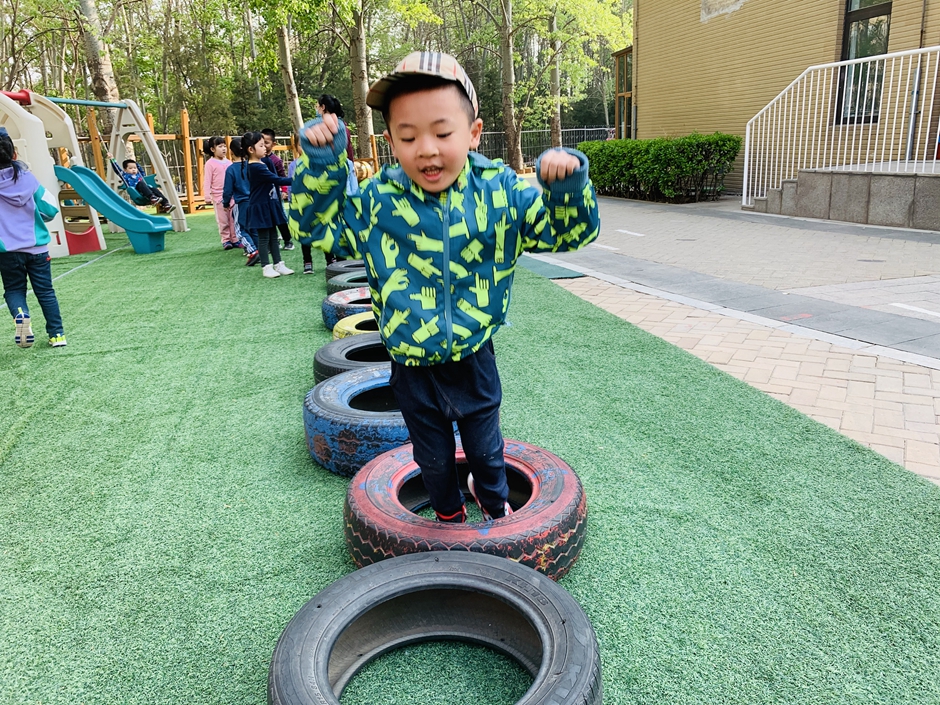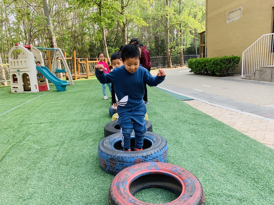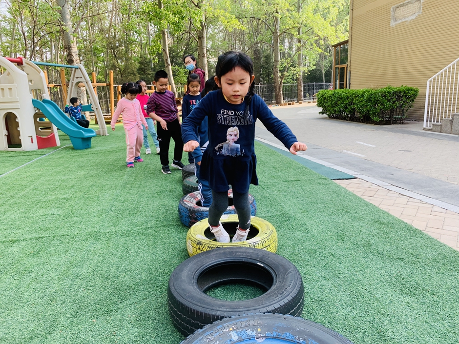 今天天气晴朗,我们到户外一起玩轮胎