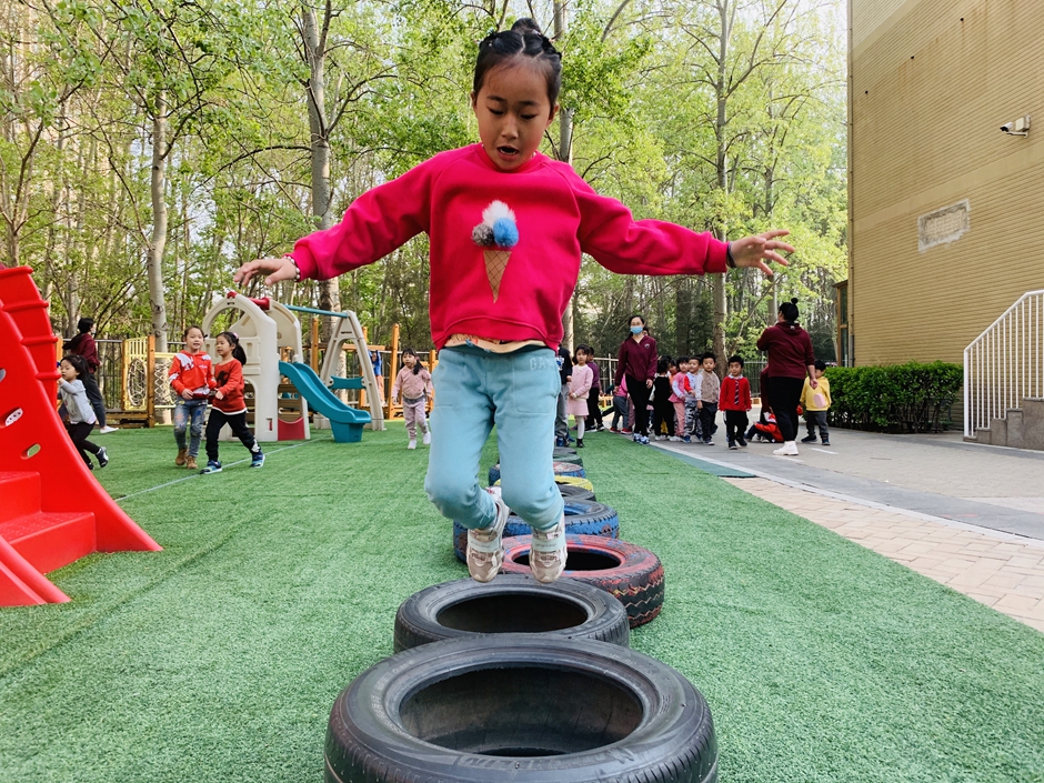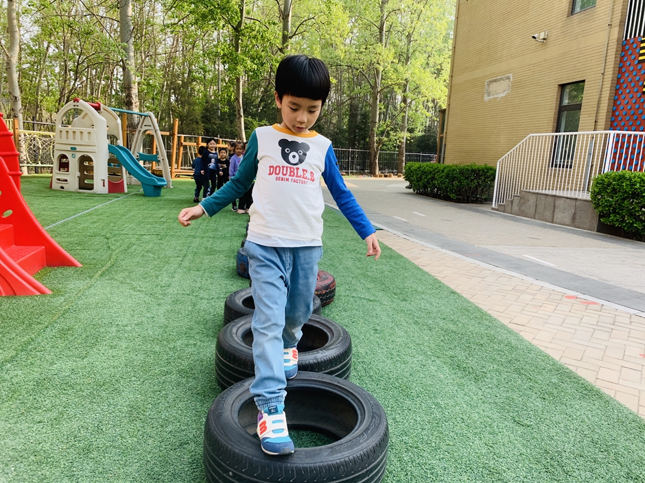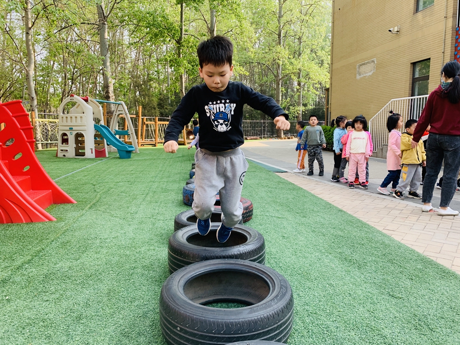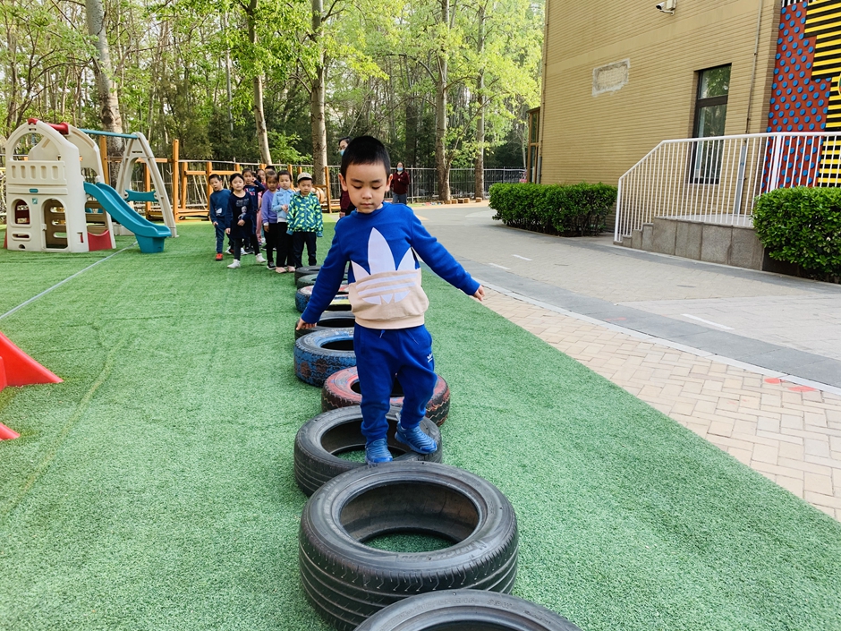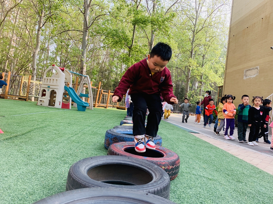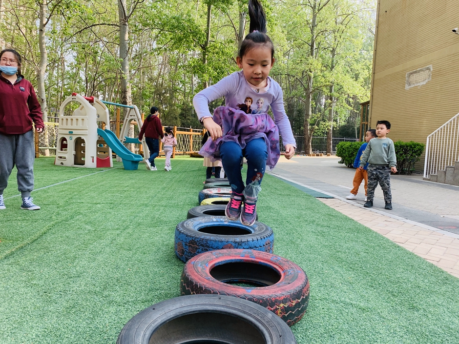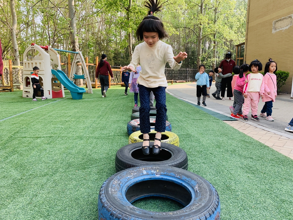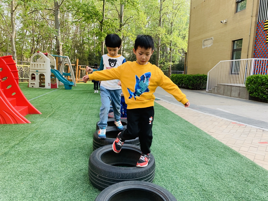 今天天气晴朗,我们到户外一起玩轮胎