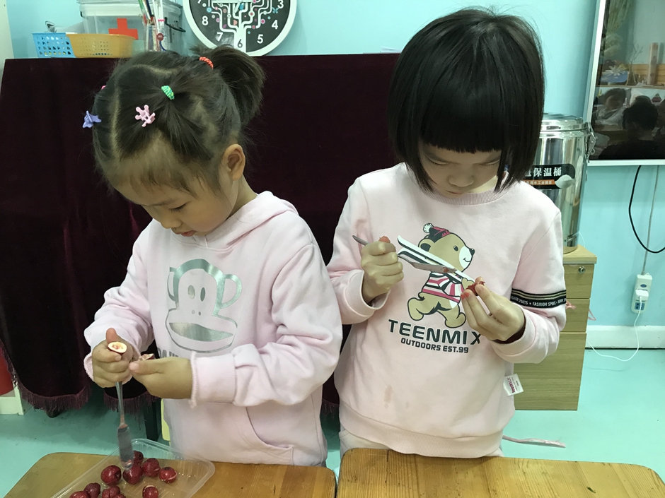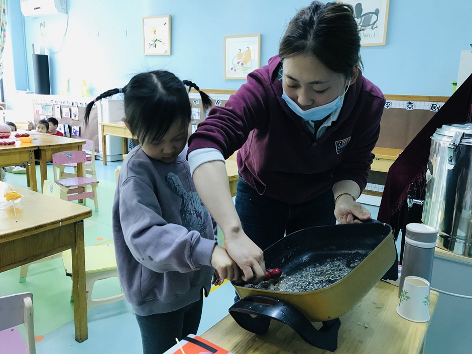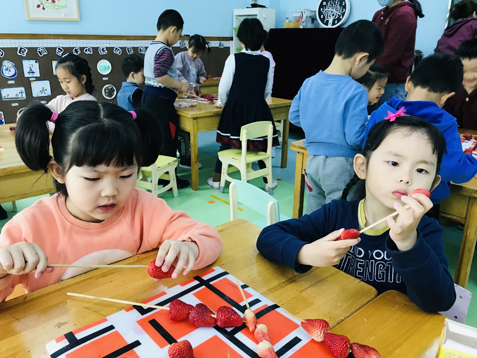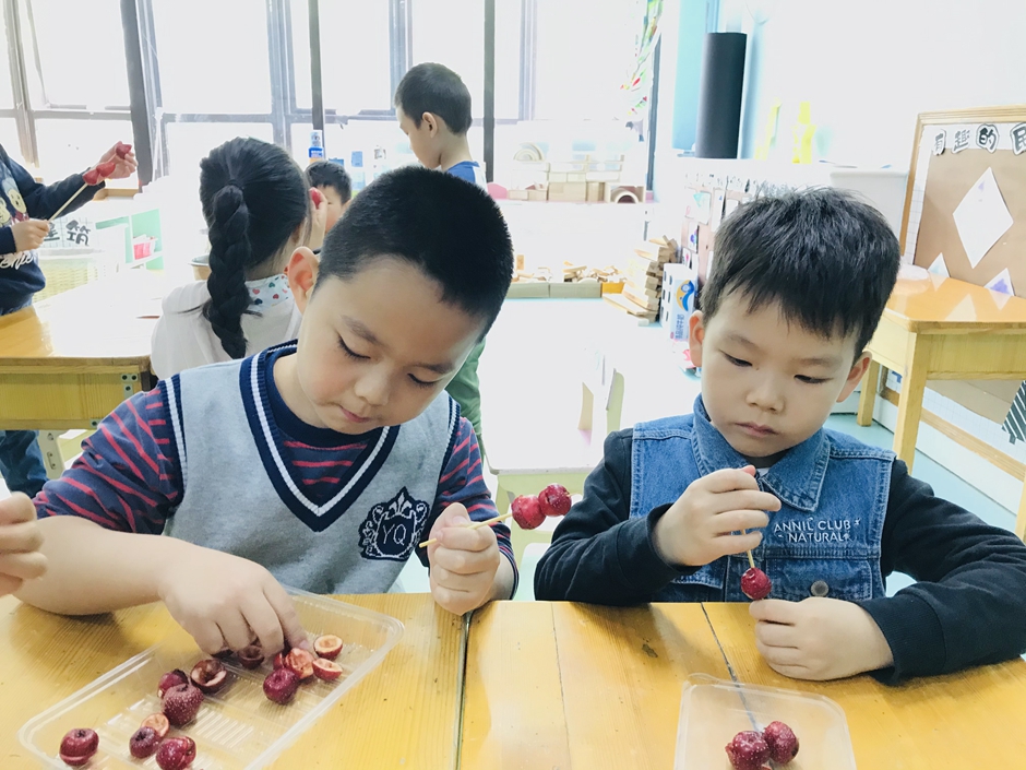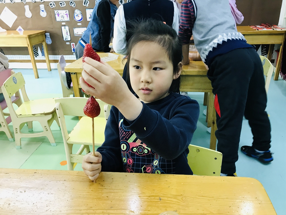最后和老师一起裹上糖,甜甜的糖葫芦就做好了,我们一起品尝一下吧