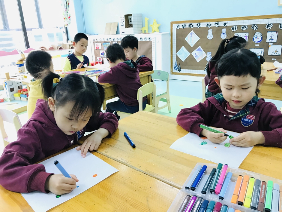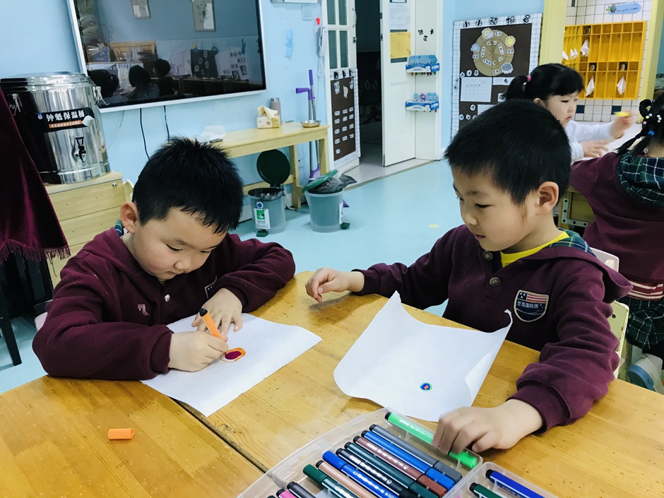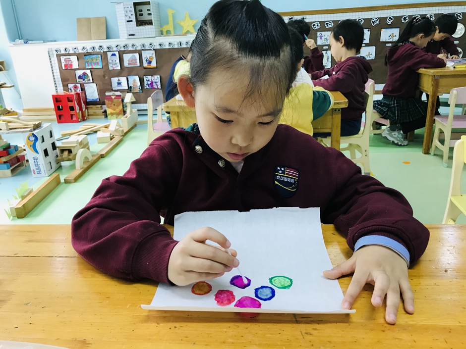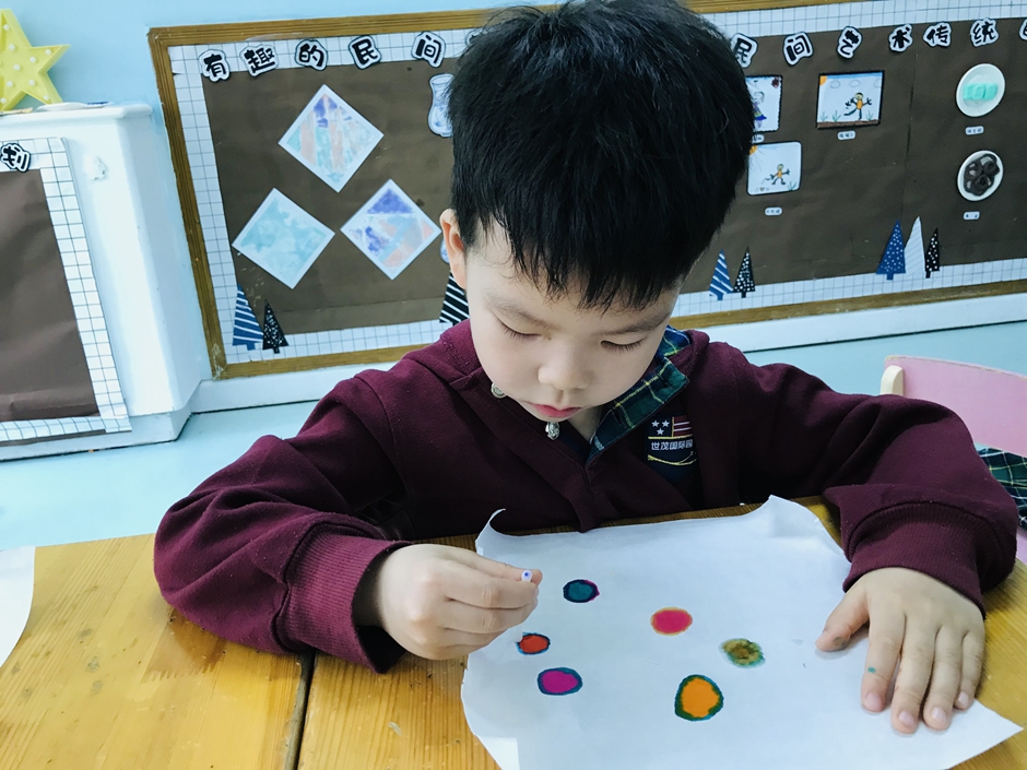 再用棉签沾水进行点画,美丽的花朵就出来了,颜色各异,漂亮极了