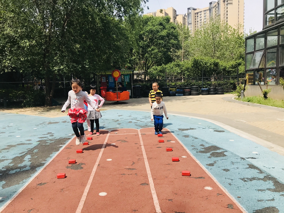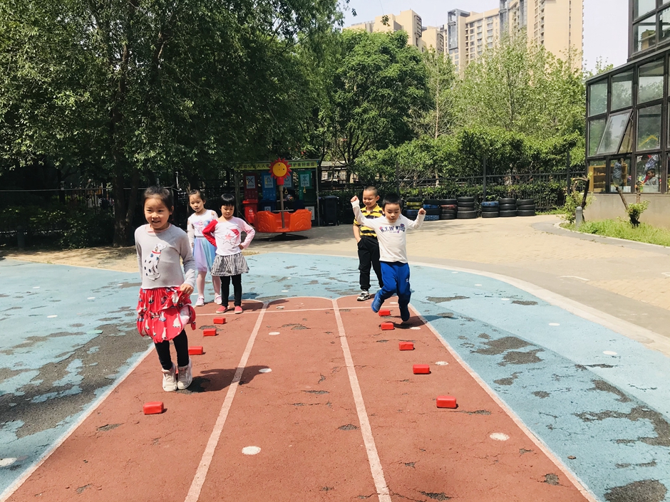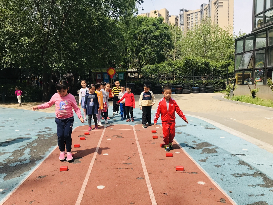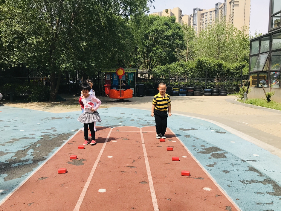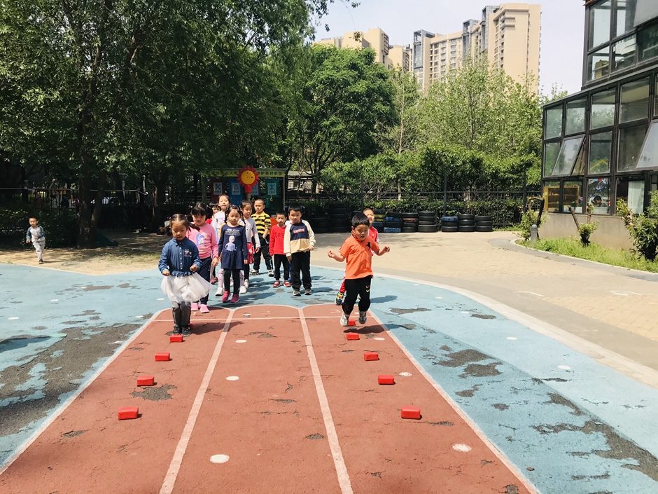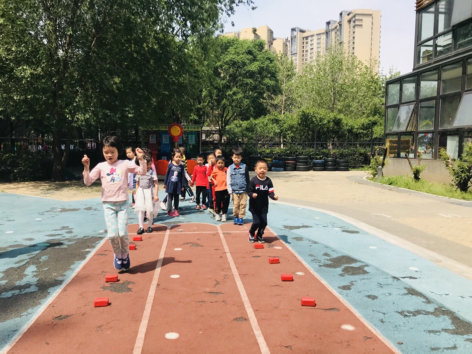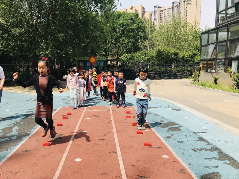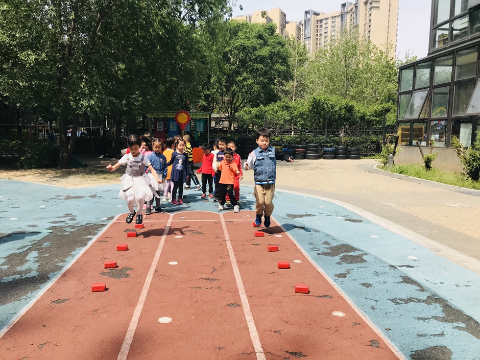 每个小朋友都在努力的向前跳,你们是最棒的