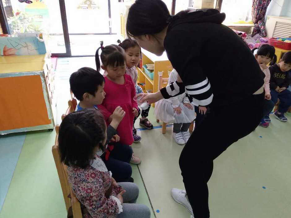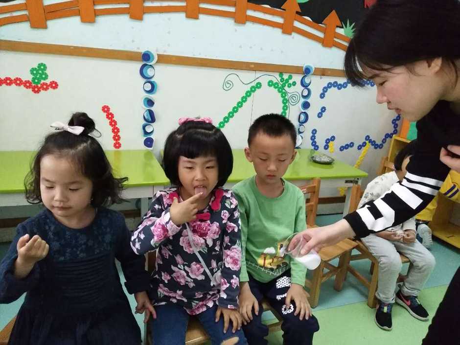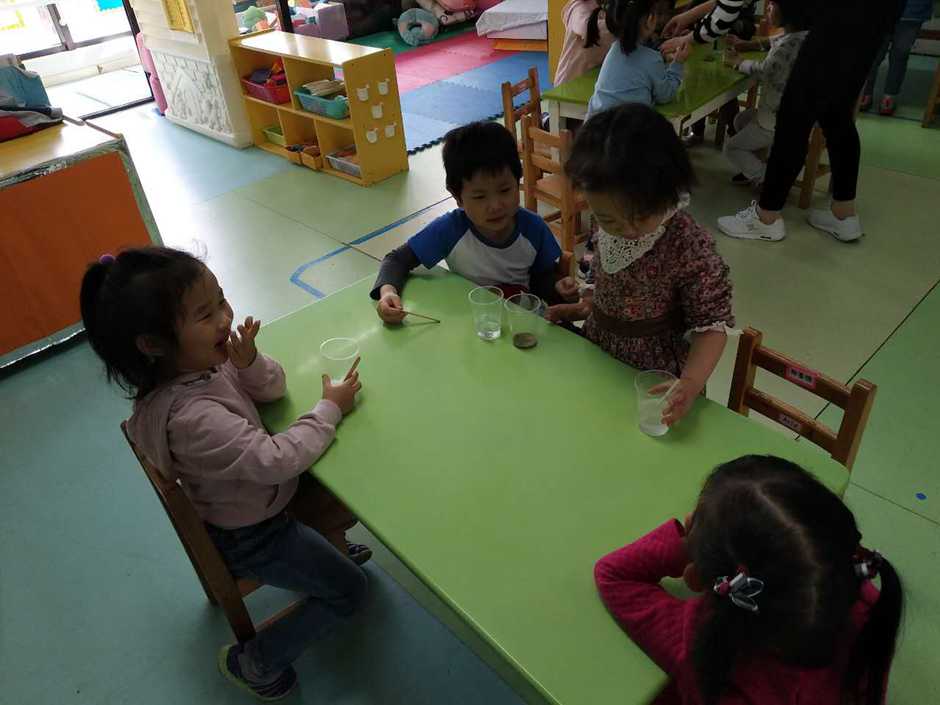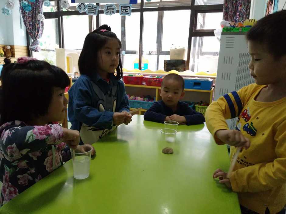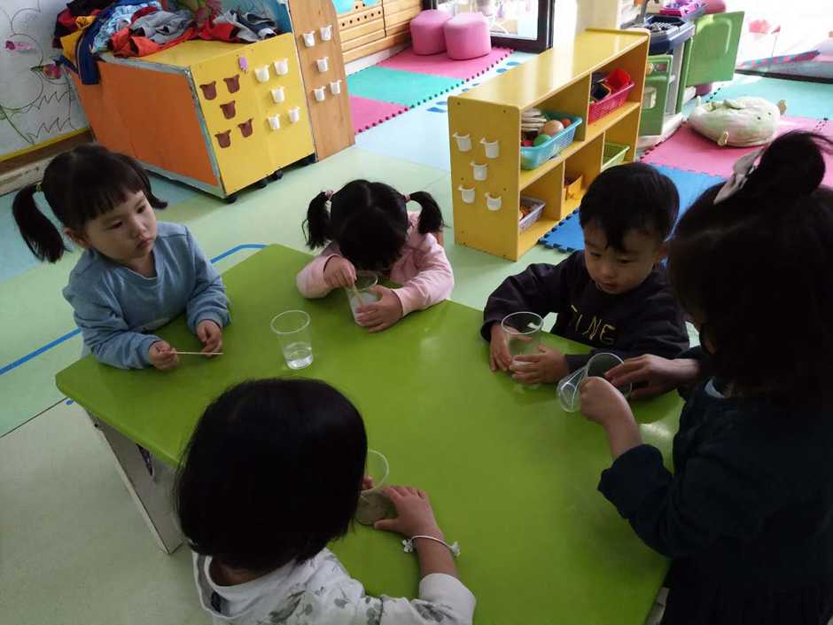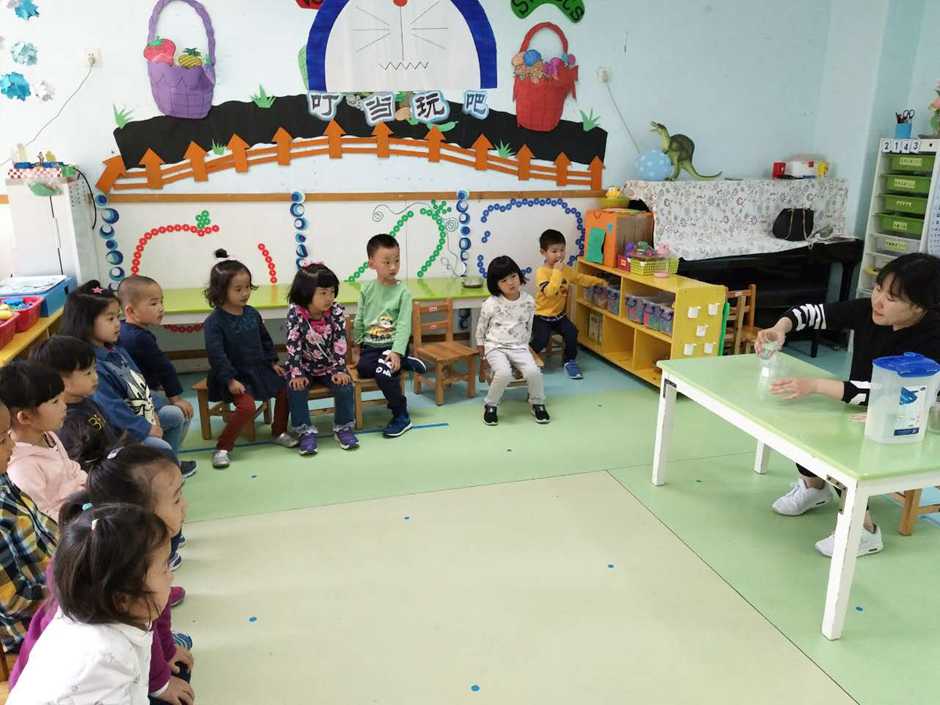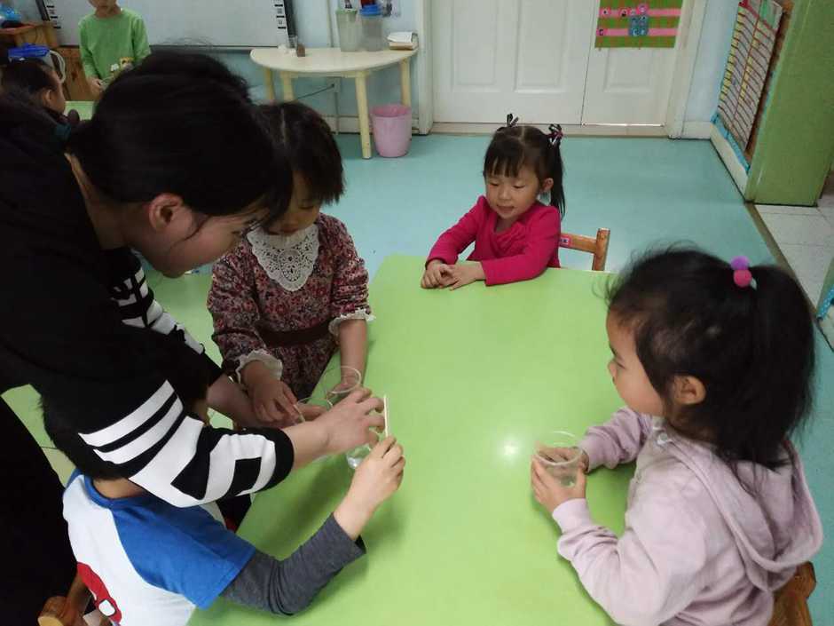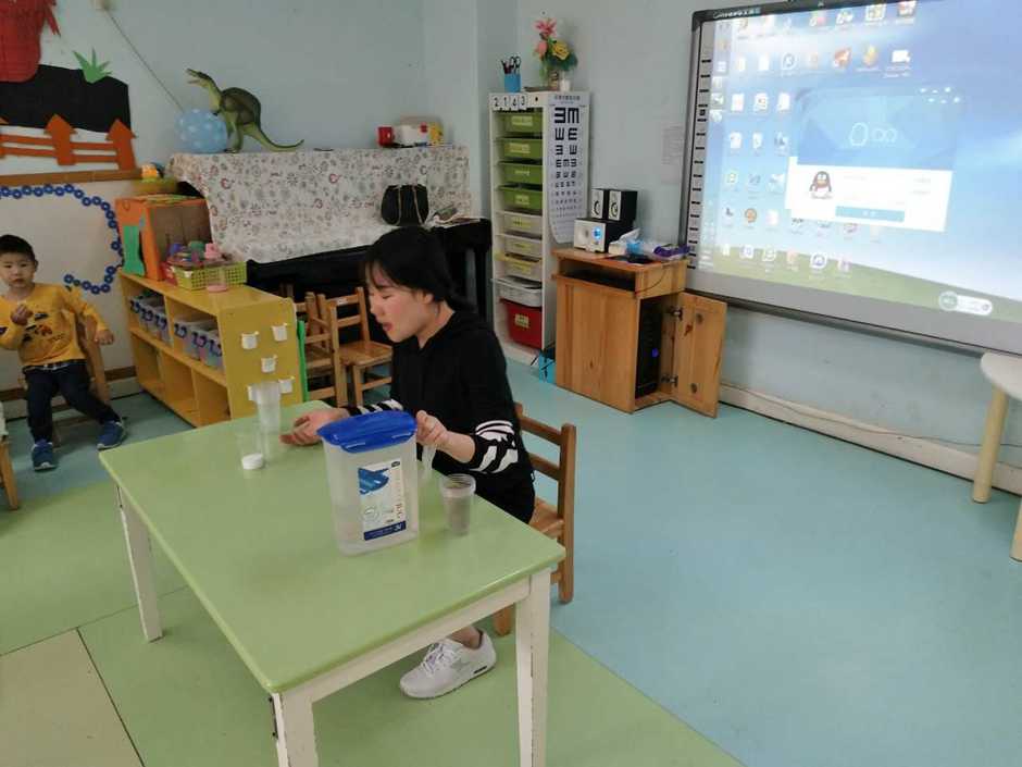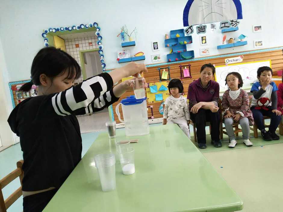 本次开展的是一节科学实验课,课题是《盐是怎么消失的》。通过改编《小马过河》的故事为导入,这次小马背上背的是盐,过河后发现自己背上的盐没了,只剩下了袋子了,引发幼儿的探索兴趣点开展的科学实验课。