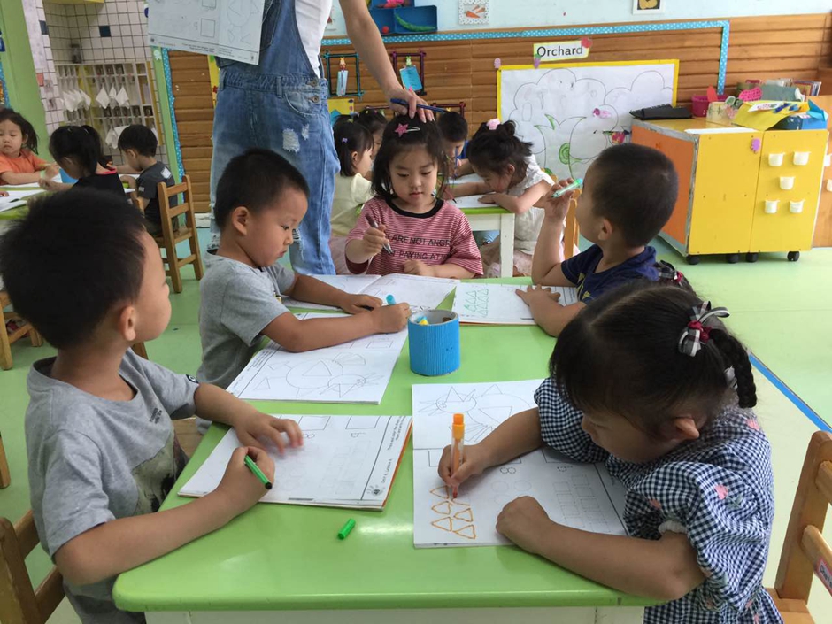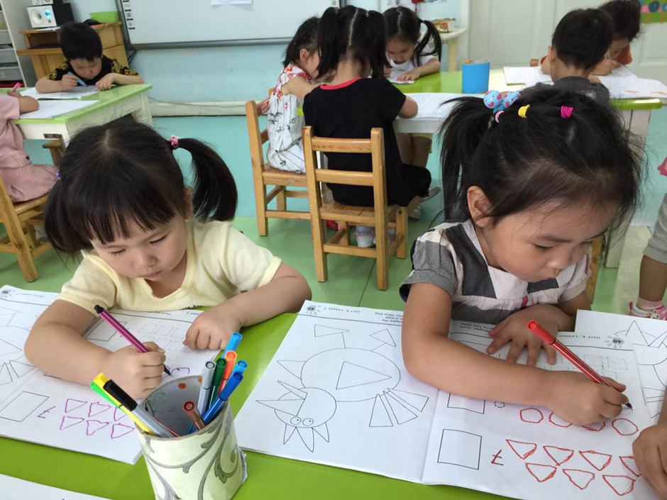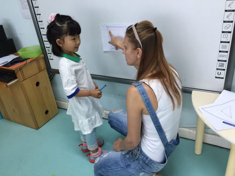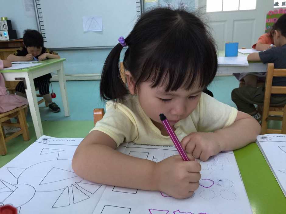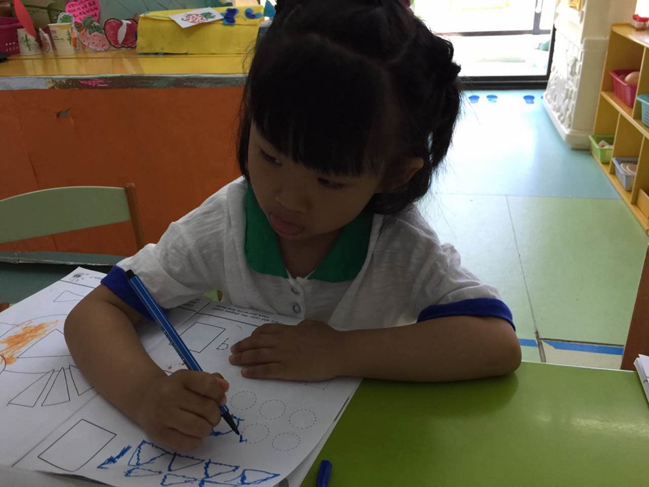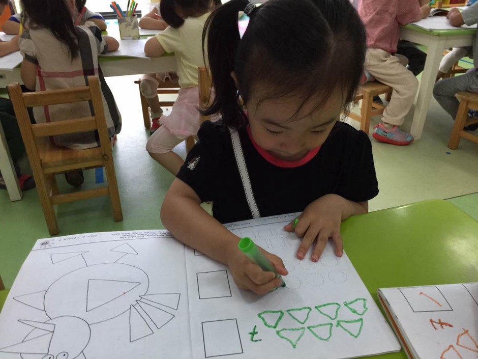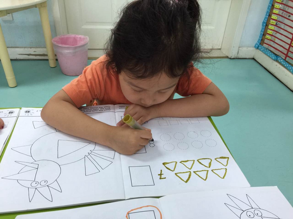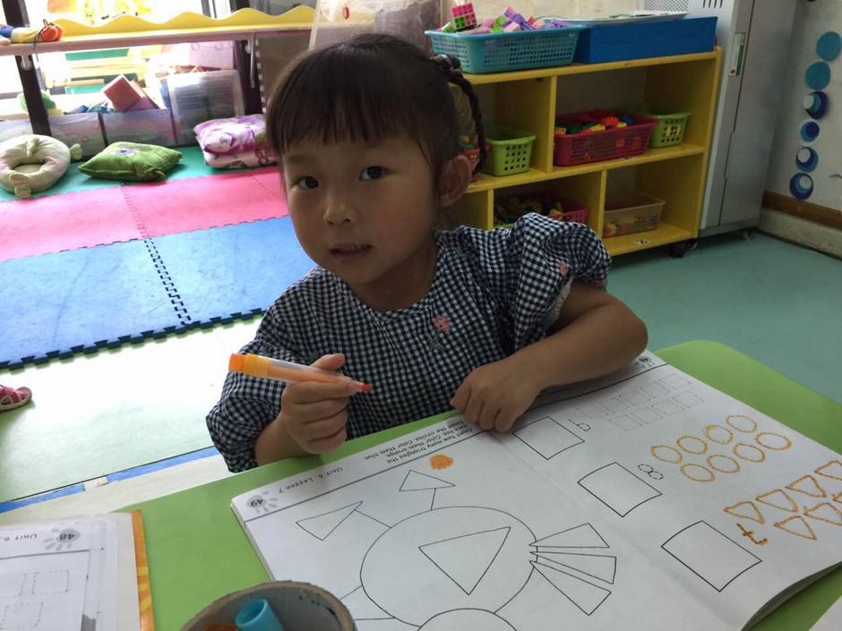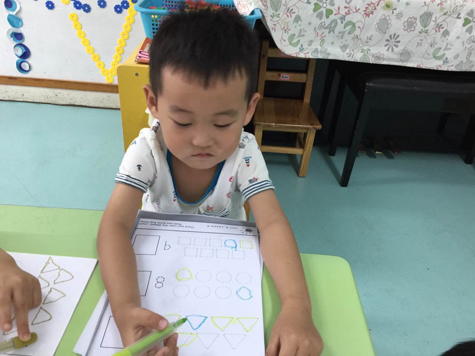 But its not enough just to know how shapes called. At the beginning i explained kids that triangle has three sides, circle doesn’t have any side and square has 4 sides.
