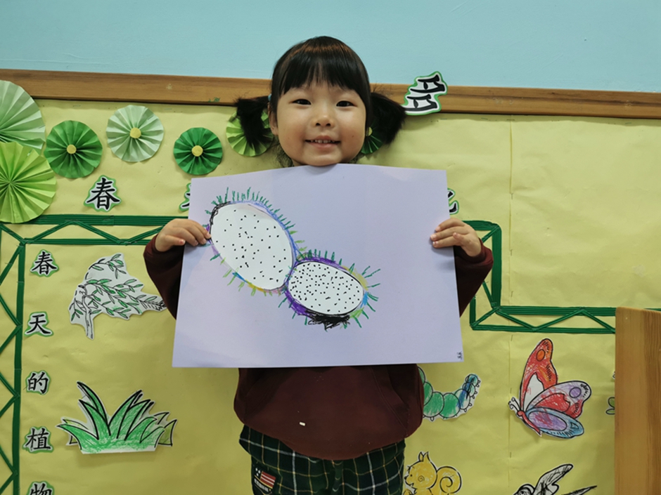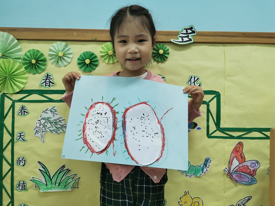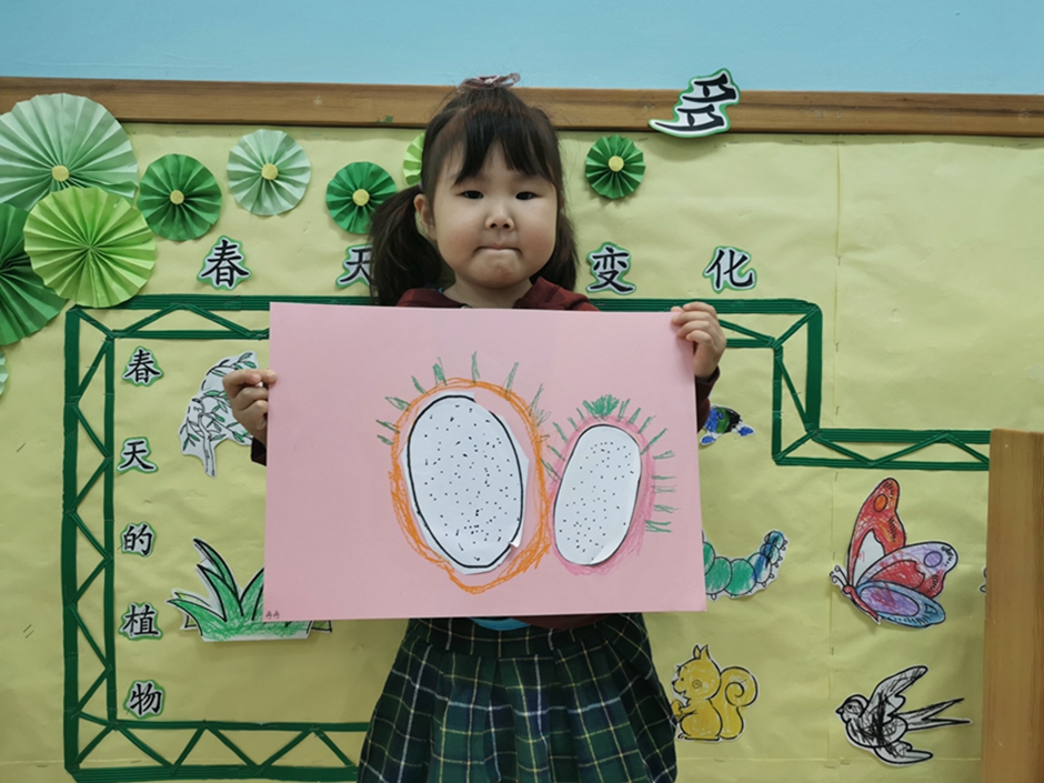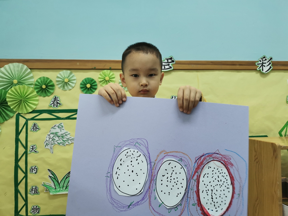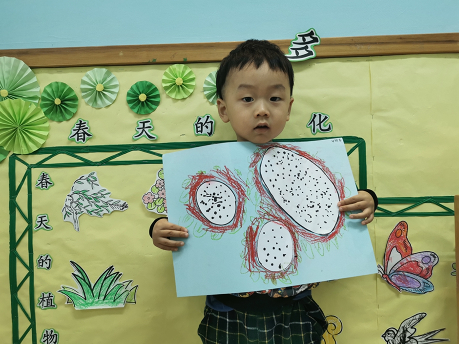今天我们一起给好吃的火龙果穿上了漂亮的衣服。小朋友们太棒啦!!!