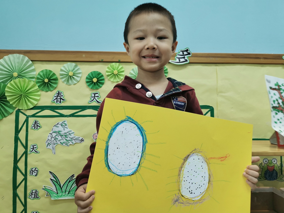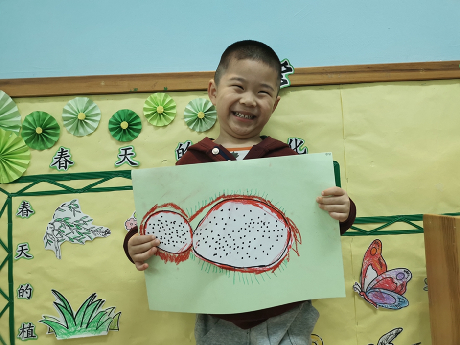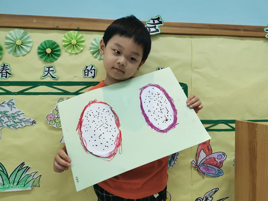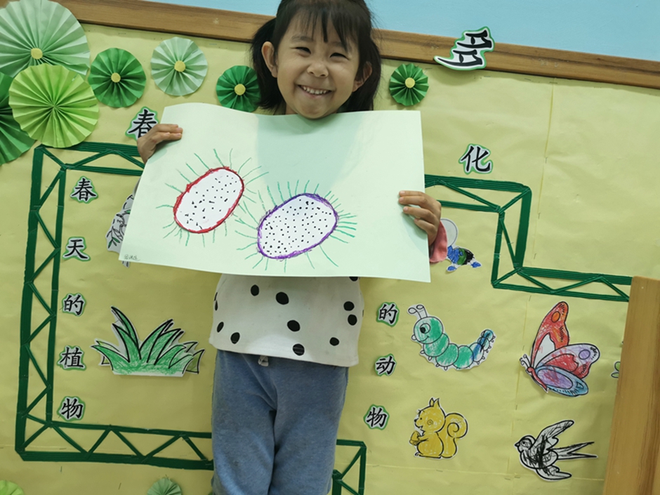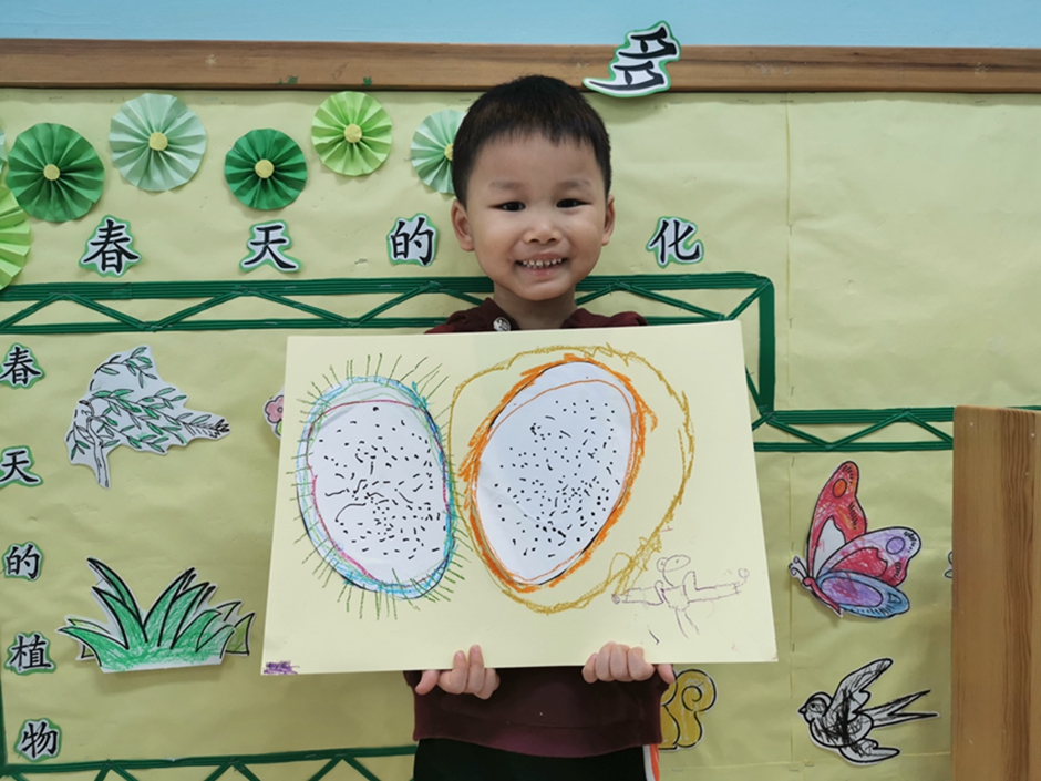 今天我们一起给好吃的火龙果穿上了漂亮的衣服。小朋友们太棒啦!!!