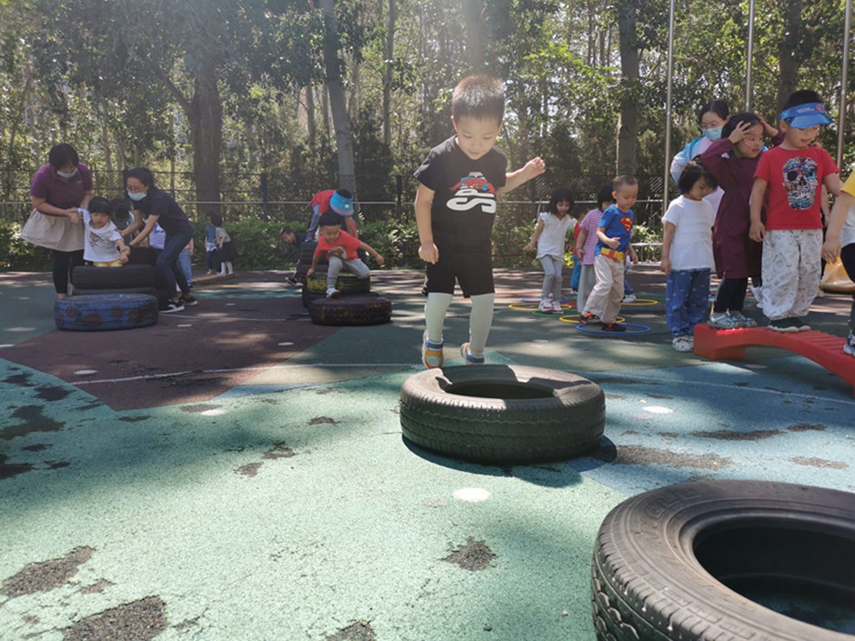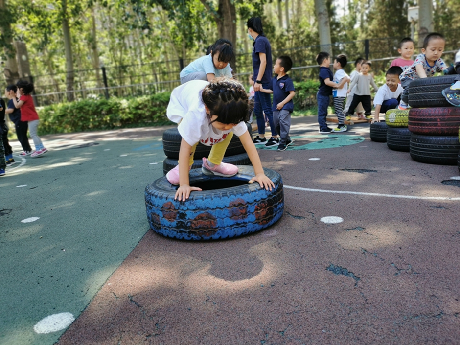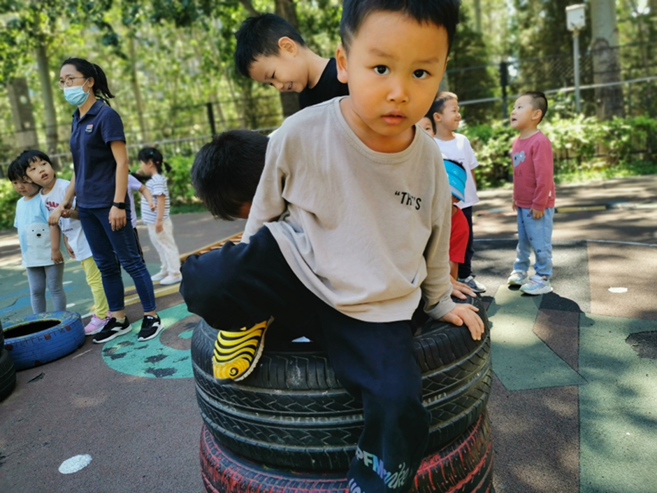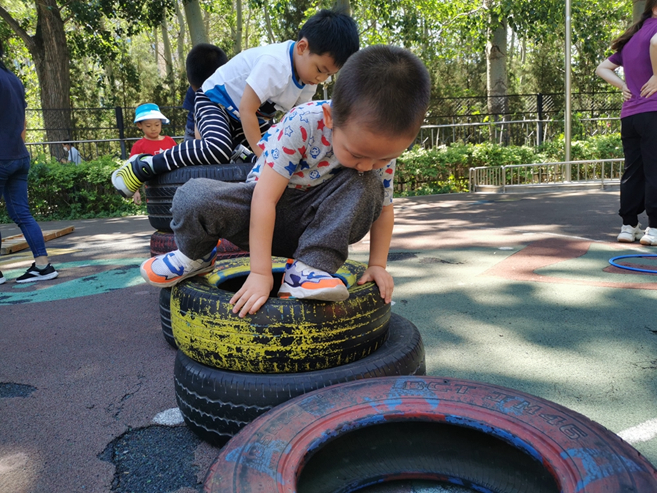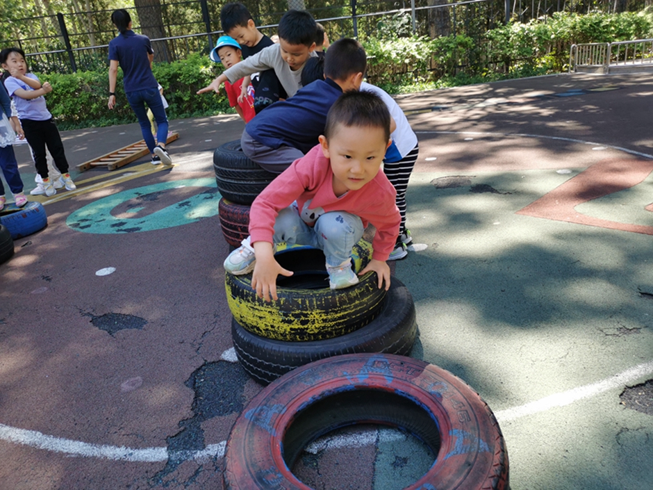 今天我们去翻轮胎山啦,你看我们是不是都很厉害啊