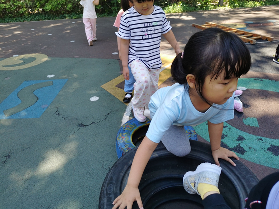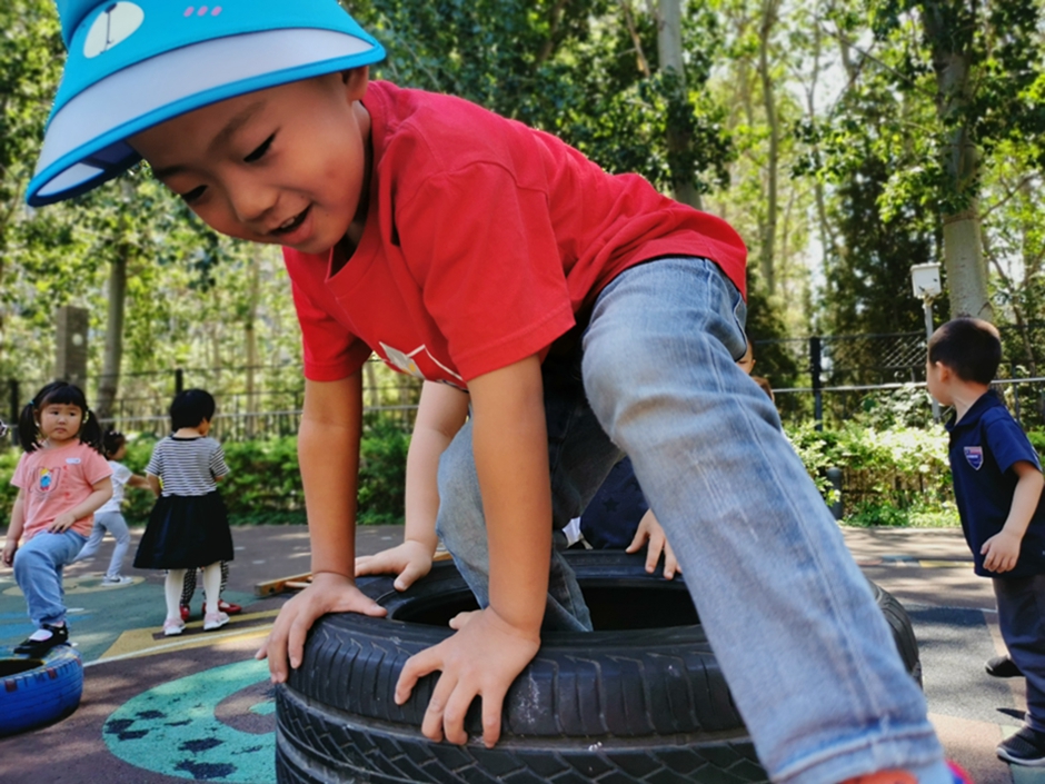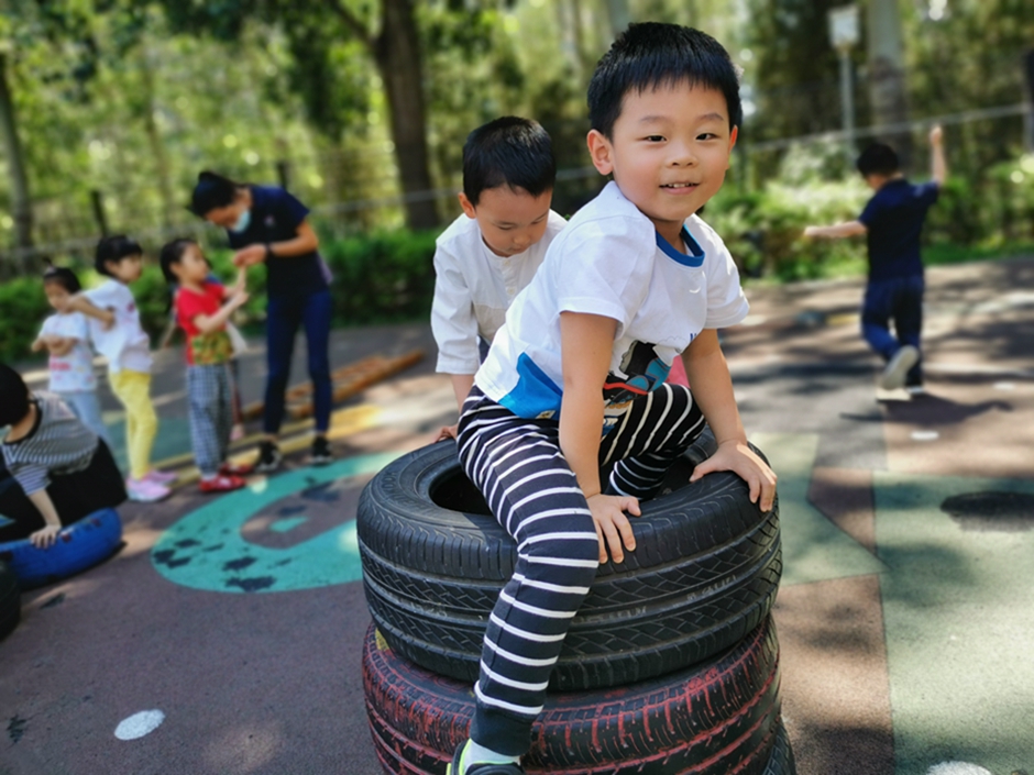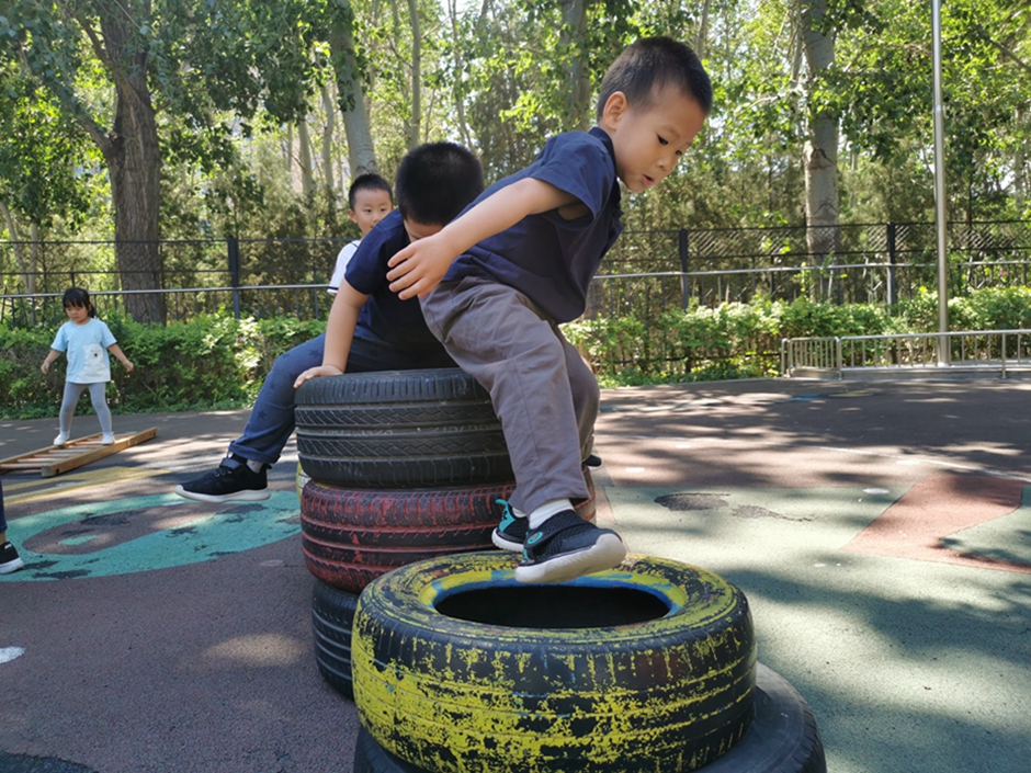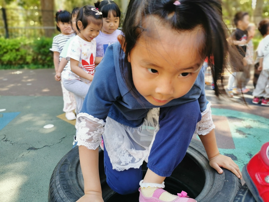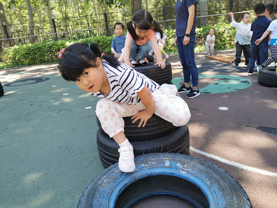 今天我们去翻轮胎山啦,你看我们是不是都很厉害啊