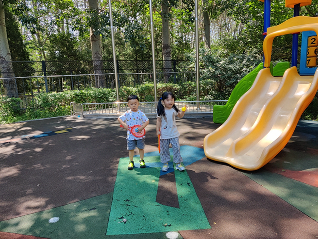 我们今天出来打球啦,看我们的球飞的多远!