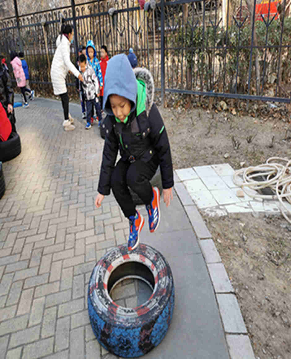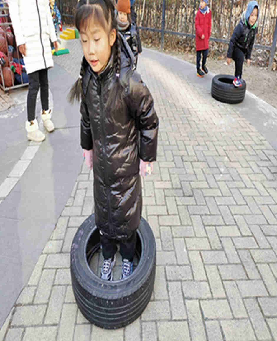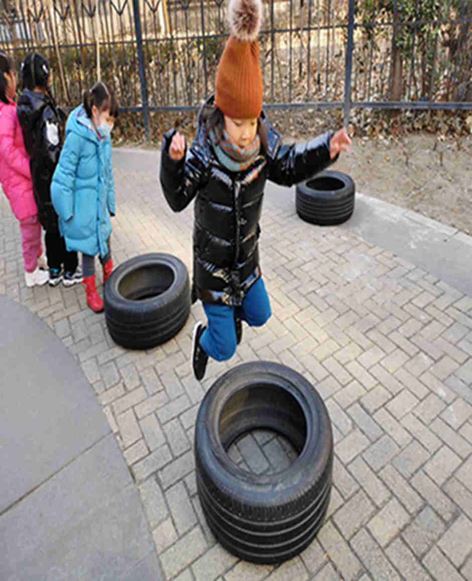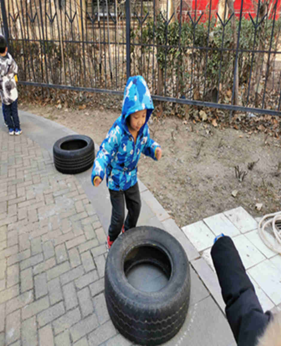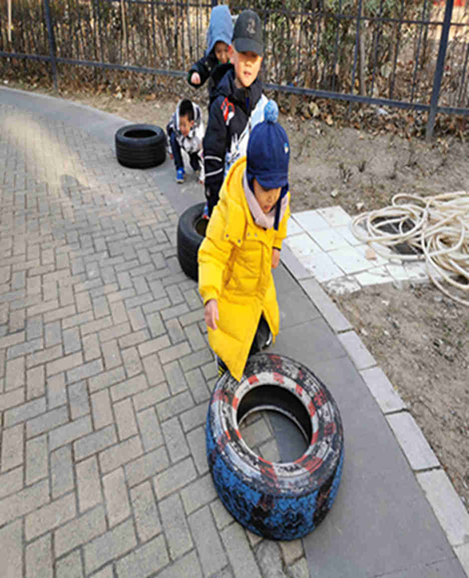天气真好啊,我们今天和轮胎和跨栏做游戏啦!