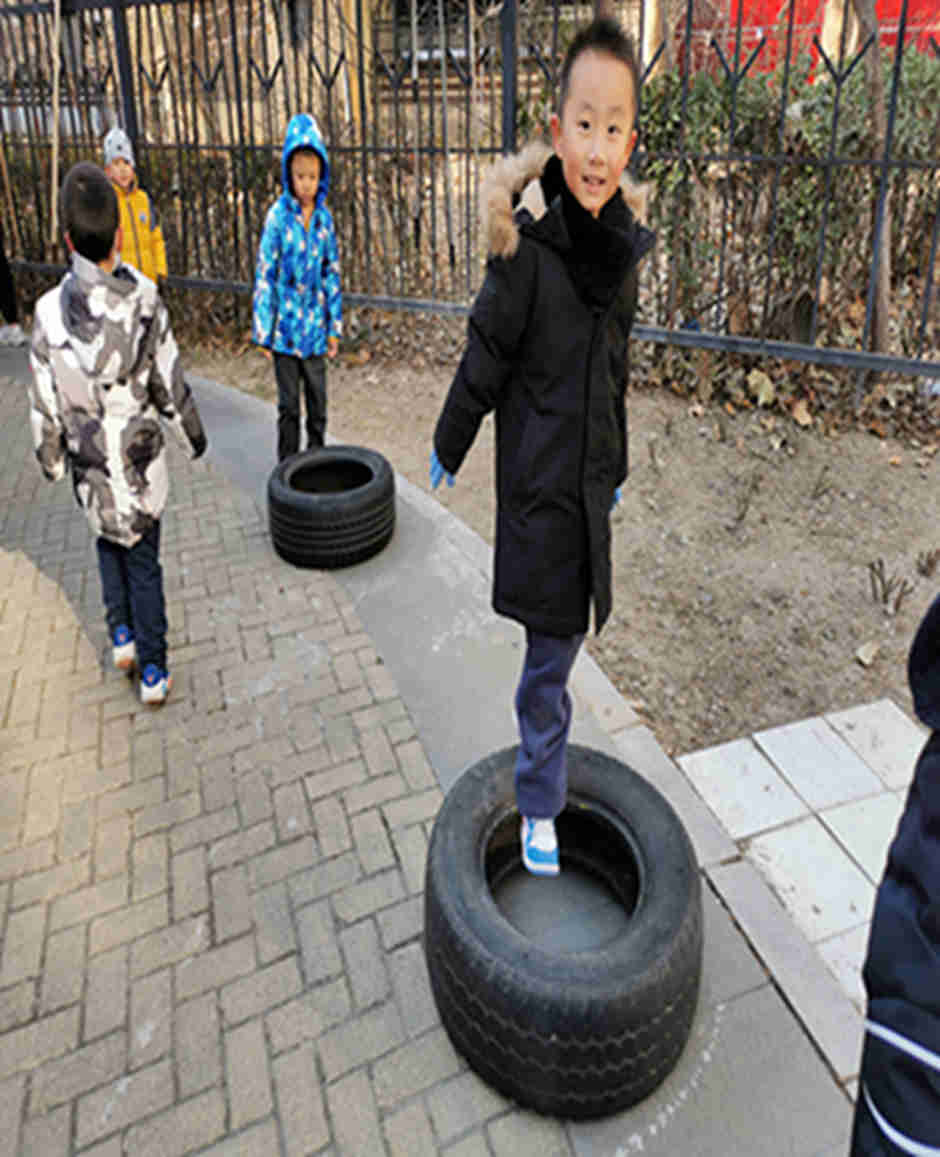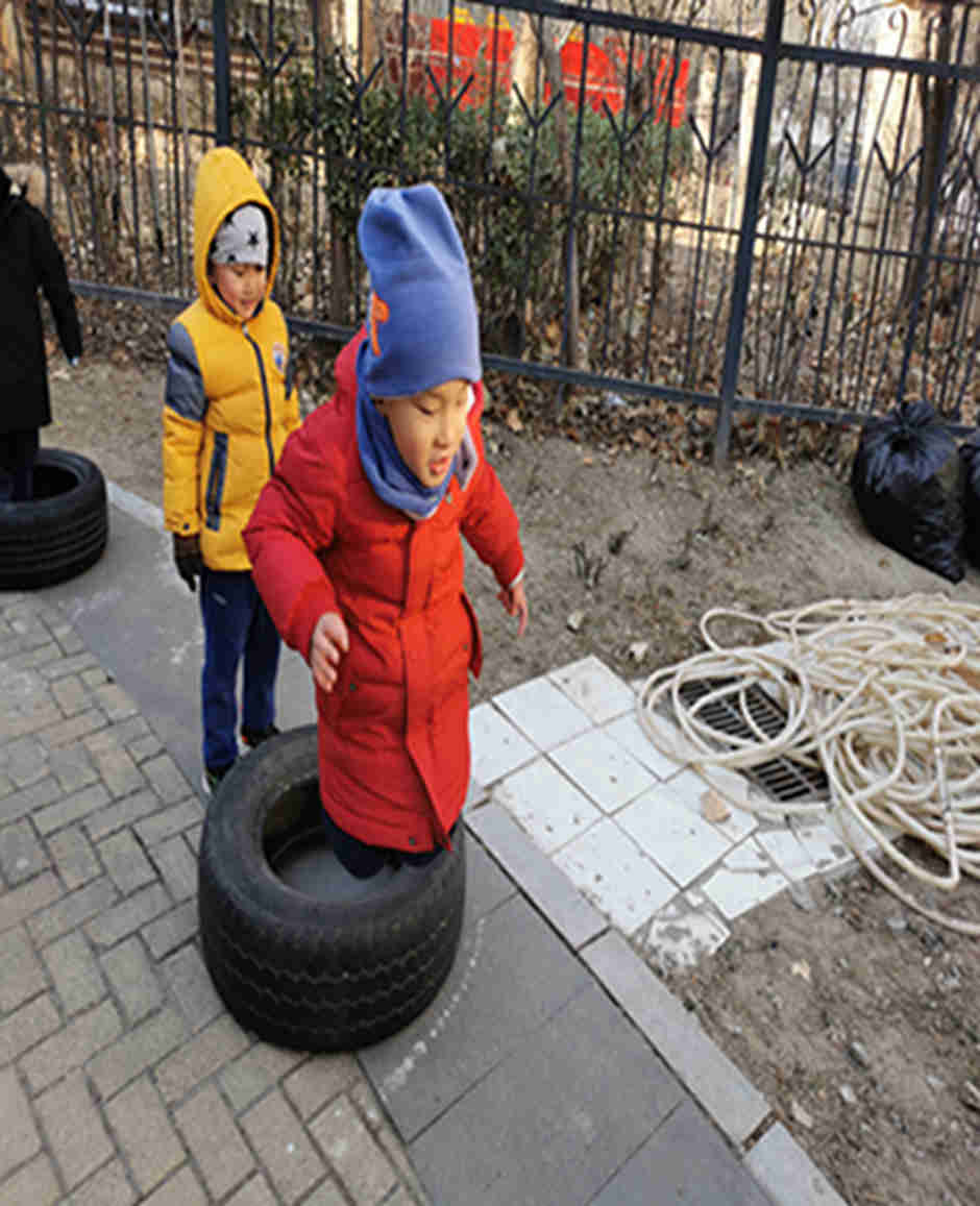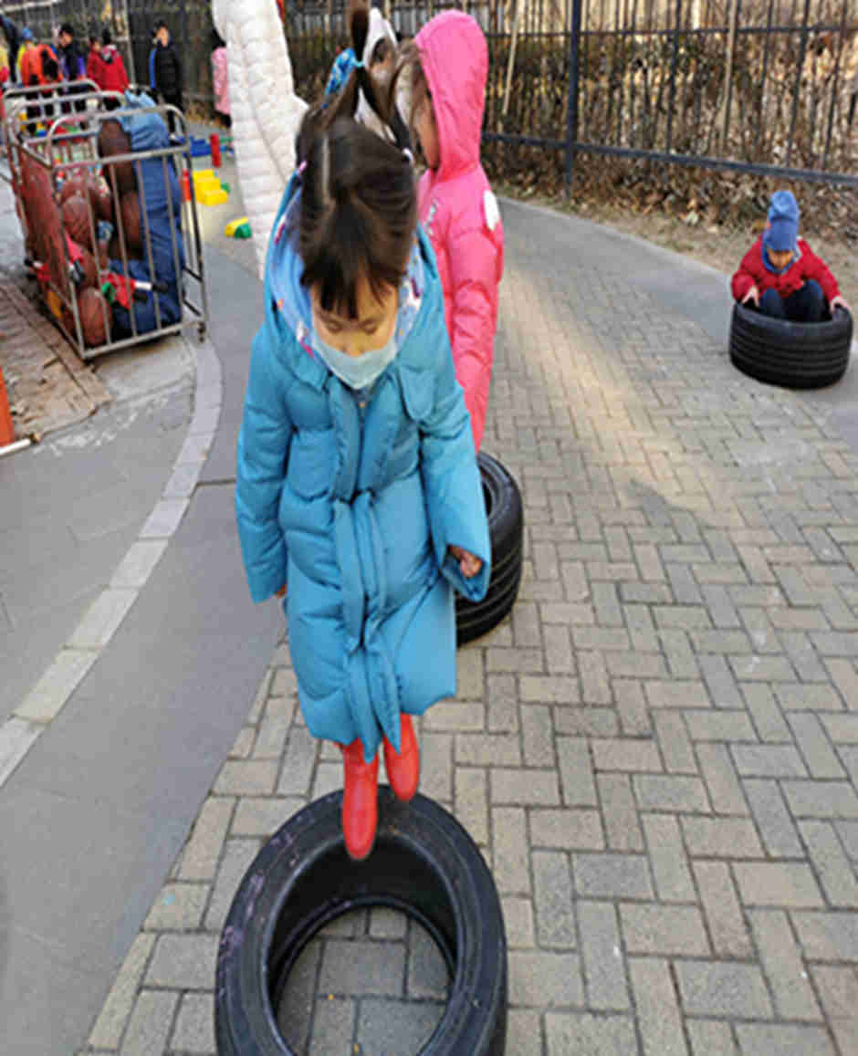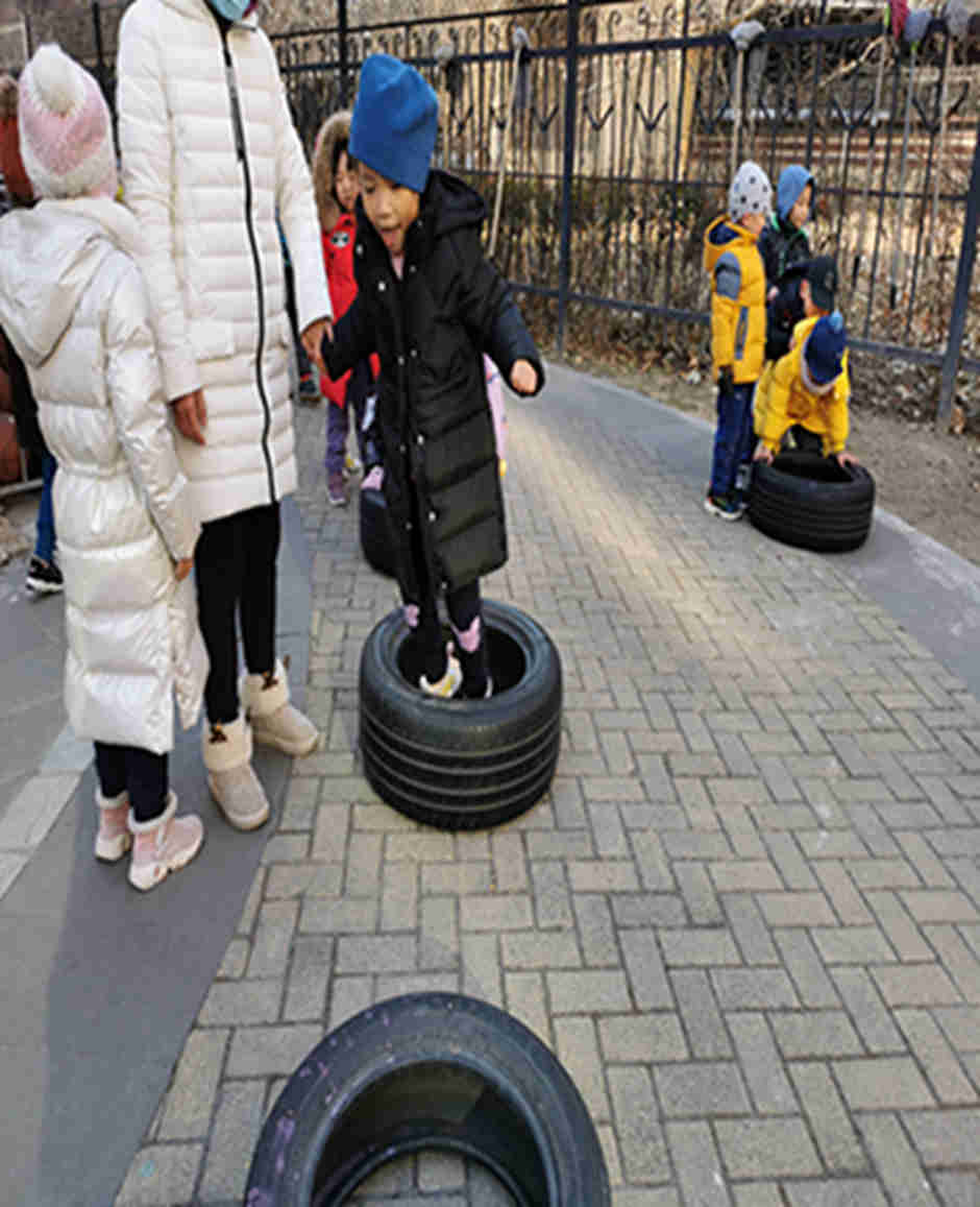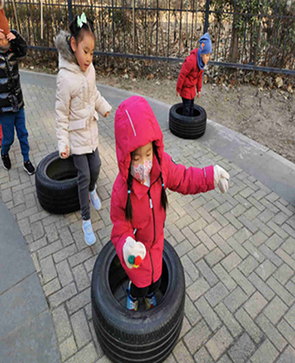 天气真好啊,我们今天和轮胎和跨栏做游戏啦!