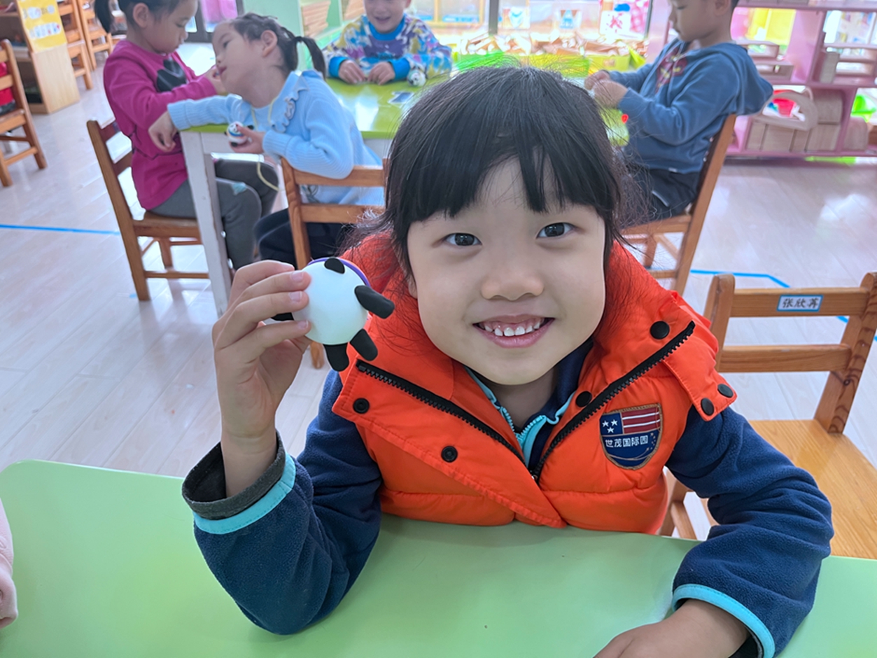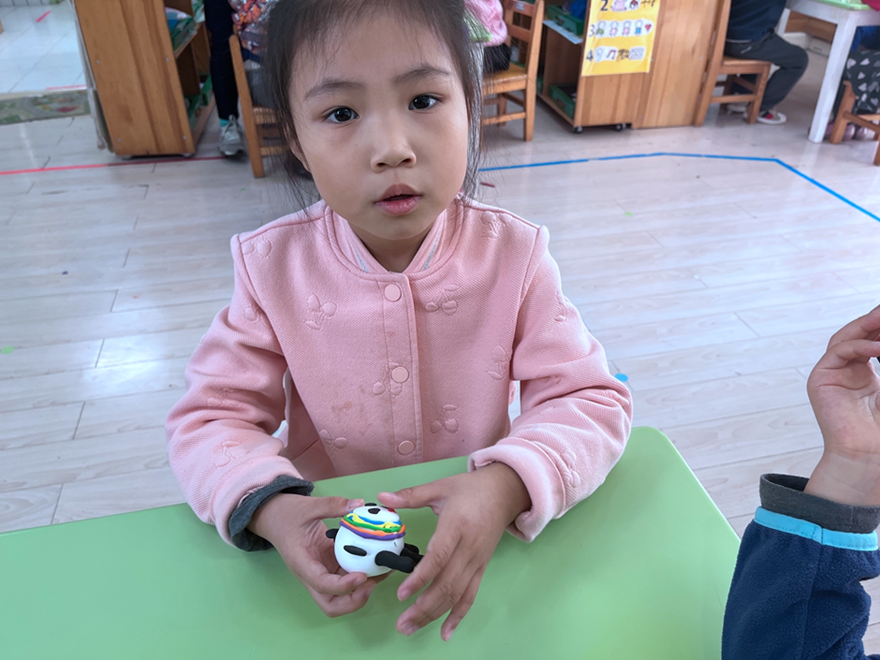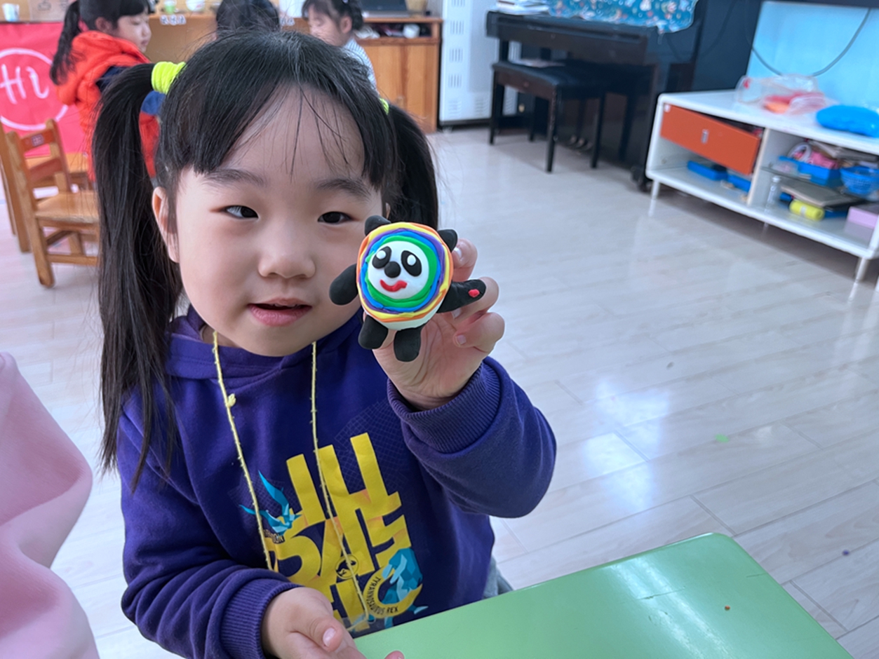 今天,我们用橡皮泥做了冬奥会的吉祥物,冰墩墩,看我们的冰墩墩多可爱呀!