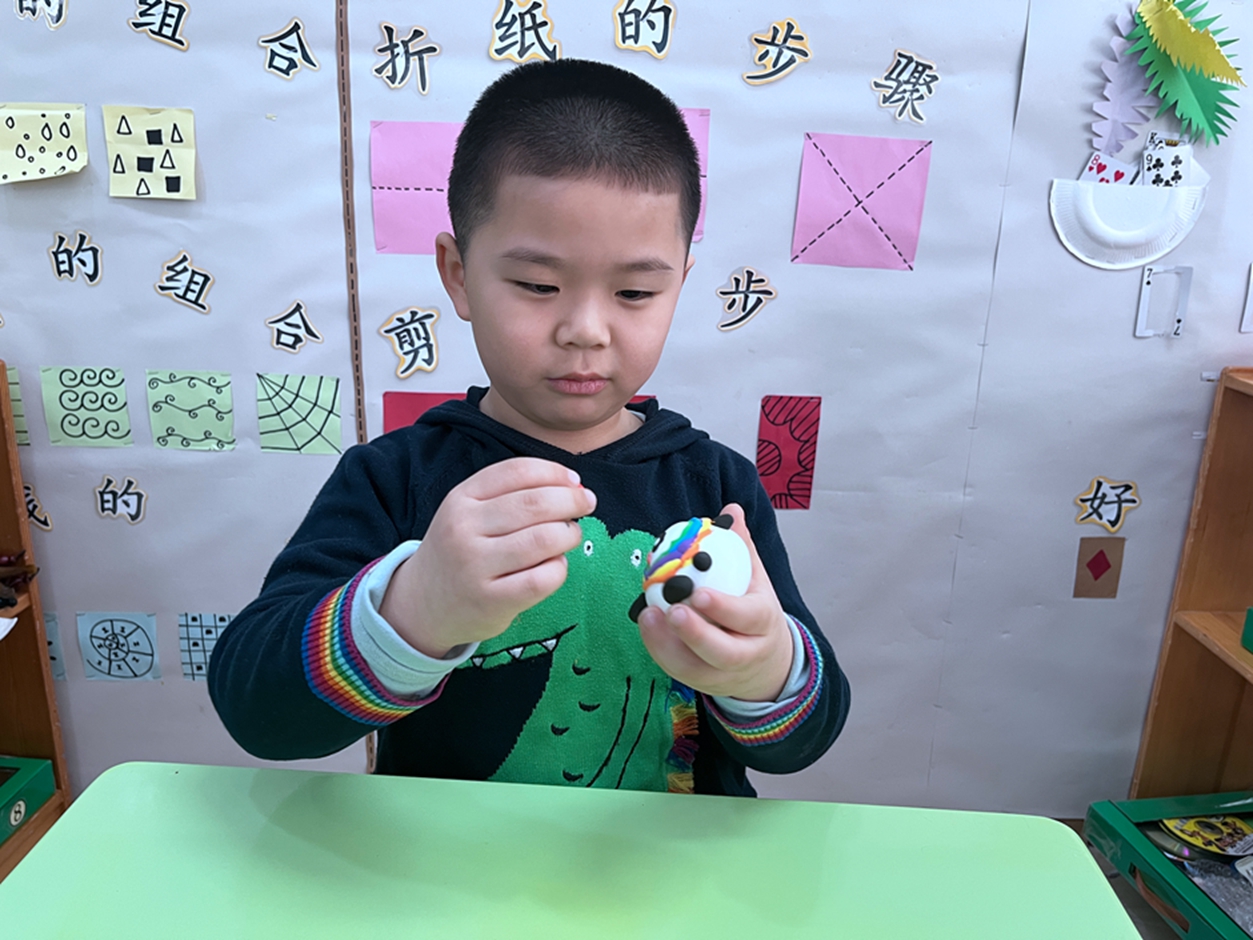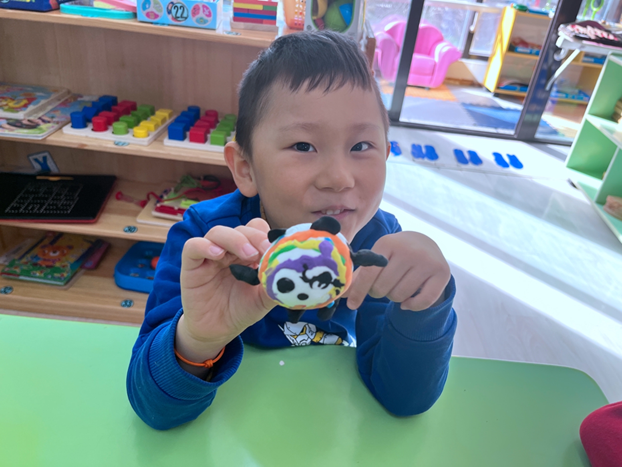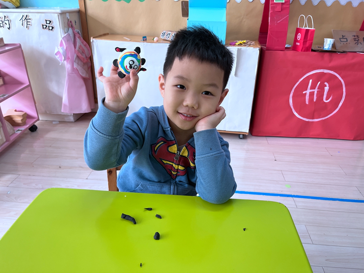 今天,我们用橡皮泥做了冬奥会的吉祥物,冰墩墩,看我们的冰墩墩多可爱呀!